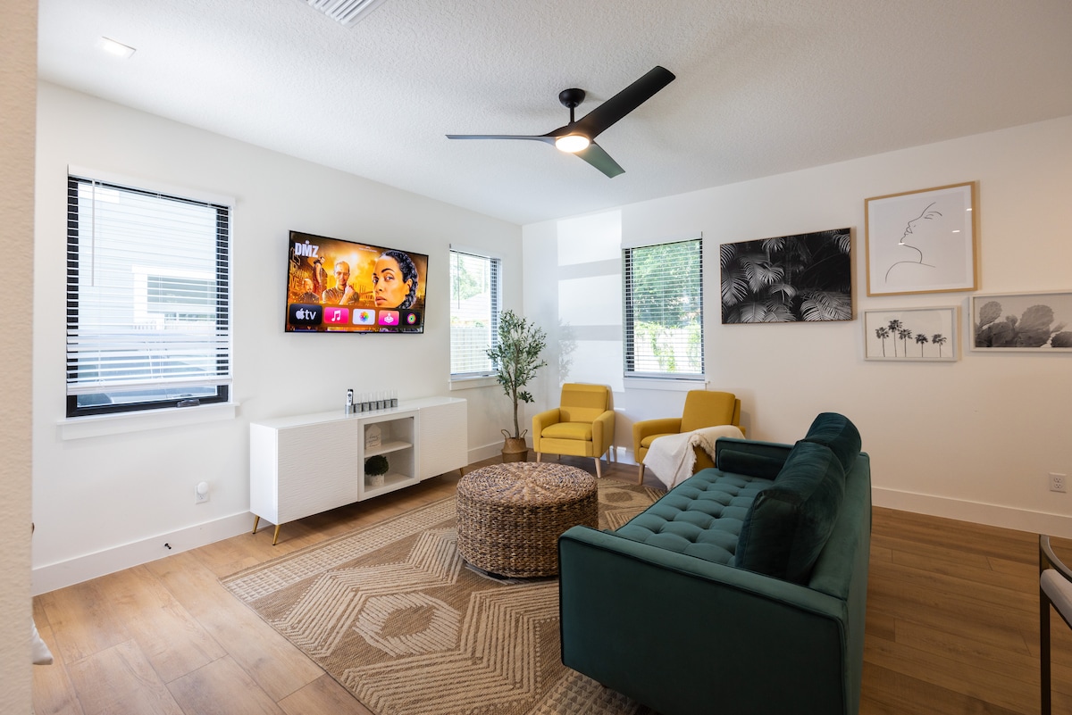 🌟 Otkrijte svoj privatni odmor u srcu centra Orlanda! Ovo elegantno utočište sa 4 spavaće sobe ima mirno dvorište sa visećim ležaljkama koje se njišu, plišanim bračnim krevetima i bračnim krevetima i dobrodošlicu prikladnom za kućne ljubimce za vašu krznenu porodicu🐾. Smješten samo nekoliko minuta od najboljih restorana i svjetski poznatih tematskih parkova u Orlandu, to je savršen spoj lokacije, udobnosti i šarma. Kuvajte u potpuno opremljenoj kuhinji, a zatim se opustite u udobnim bračnim krevetima.😴 Doživite udobnost i praktičnost u čarobnom Orlandu!