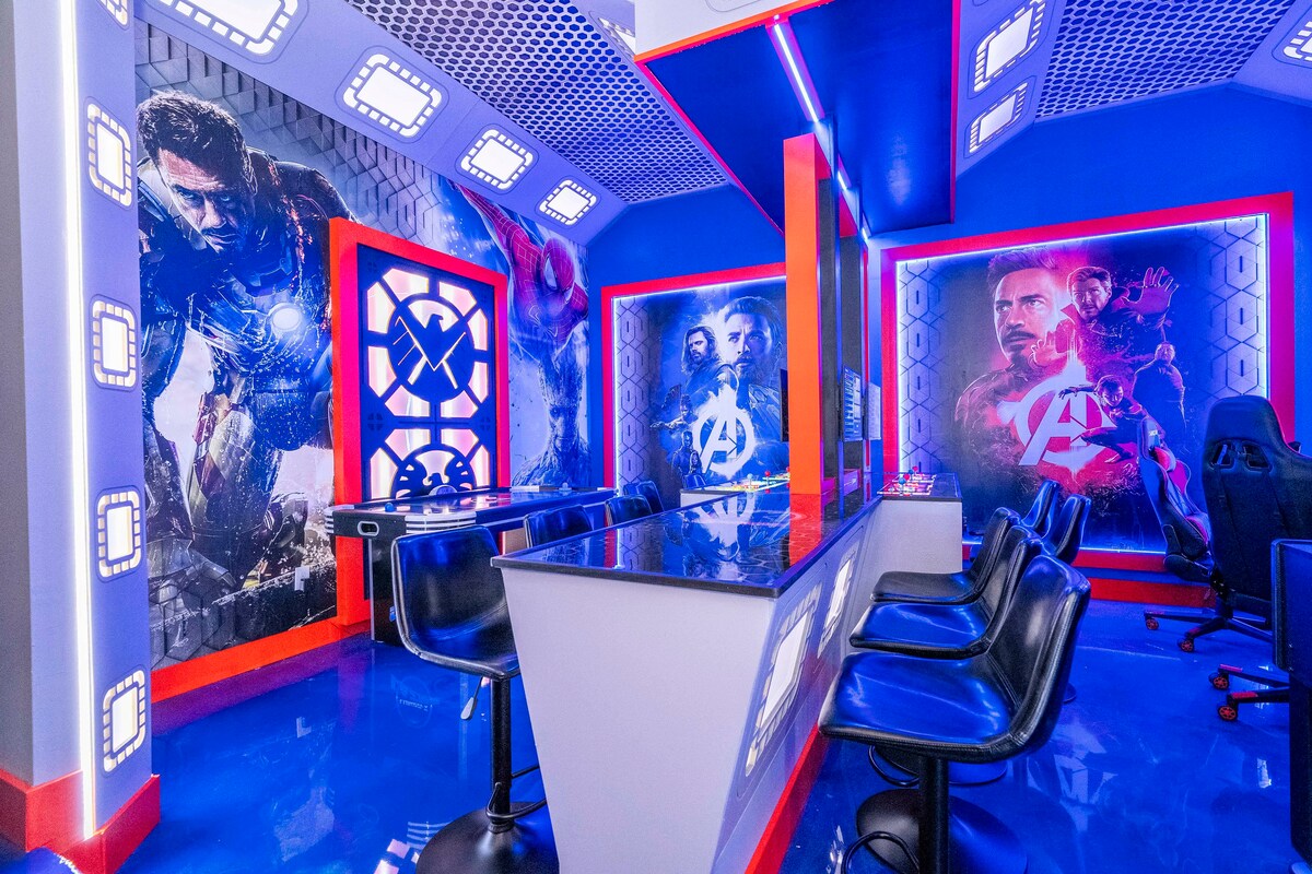 Savršena ravnoteža ELEGANTNOG DIZAJNA, LUKSUZNE UDOBNOSTI i BESKRAJNE ZABAVE, prelijepo smješten sa zadivljujućim pogledom u prostranom odmaralištu Reunion od 3,5 kvadratne milje. Imaćete sopstveni privatni bazen, spa centar za prelijevanje, sobu za bioskope STAR WARS sa fliperom, klasične arkadne igre i karaoke, MARVEL dječju sobu sa toboganom i dvostrukim krevetima, najnoviju Xbox Series S, prostranu terasu za bazen od 2000 stopa, ognjište, pa čak i ormar HARI POTER skriven ispod stepenica, nekoliko minuta do Diznija.