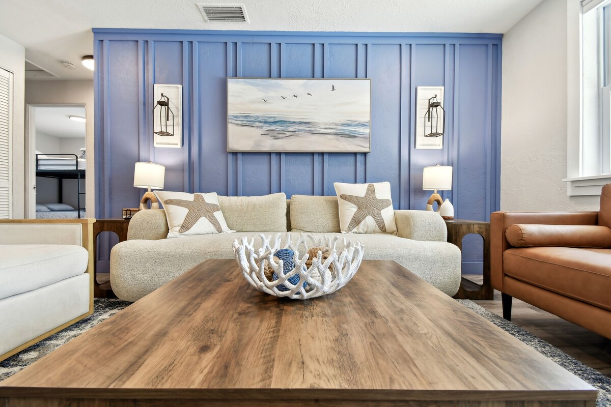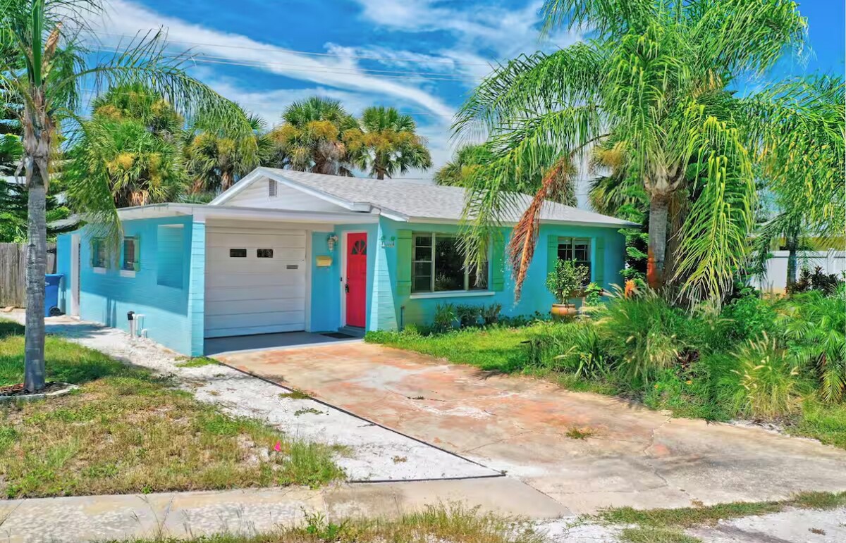 2-min walk to beach! 🌊⛵ Entire home 2-Bd/1.5-Ba for up to 6 guests (2-adult/4-kid) or 4-adult. High-Speed Wi-Fi, Self-Check-in, Free Parking, 4 Theater Recliners, 2 Smart TVs, 3 Memory Foam Platform Beds, 1 Full Bath, Laundry/Half Bath combo, Full Kitchen, Carport, Patio, Backyard, Grill, Outdoor Shower. 7-min walk to River w/dock Fishing, Kayaking, Sunsets.🌅 3-min drive to Publix, shops, dining, parks. 7 miles to Daytona. Treat yourself to a vacation of Sunshine☀️, ocean breeze & relaxation!
