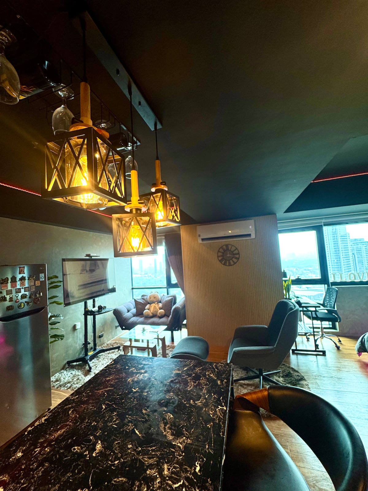 Dobro došli u VCozy PH — elegantan kondominijum od 47 m2 u Ortigas centru sa prelijepim pogledom na horizont, udobnim art deko enterijerom i svime što vam je potrebno za savršen boravak. Uživajte u 55-inčnom Samsung The Frame TV-u s Netflixom, balkonu za zalaske sunca, društvenim igrama za zabavne večeri i kuhinji za domaće obroke. Idealno za odmor, rad na daljinu ili vikend-putovanja. Osim toga, imate pristup bazenu i obezbjeđenju u predvorju 24/7!