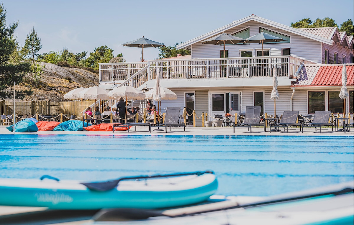 Here you live high up with sweeping views of the sea and mountains. The spacious wooden house has a pool perfect for cooling off on sunny days, and an attefall house that provides extra space. From the patio, you can watch the light shift across the landscape. The evenings offer open panoramic views as the sun sets behind the cliffs.