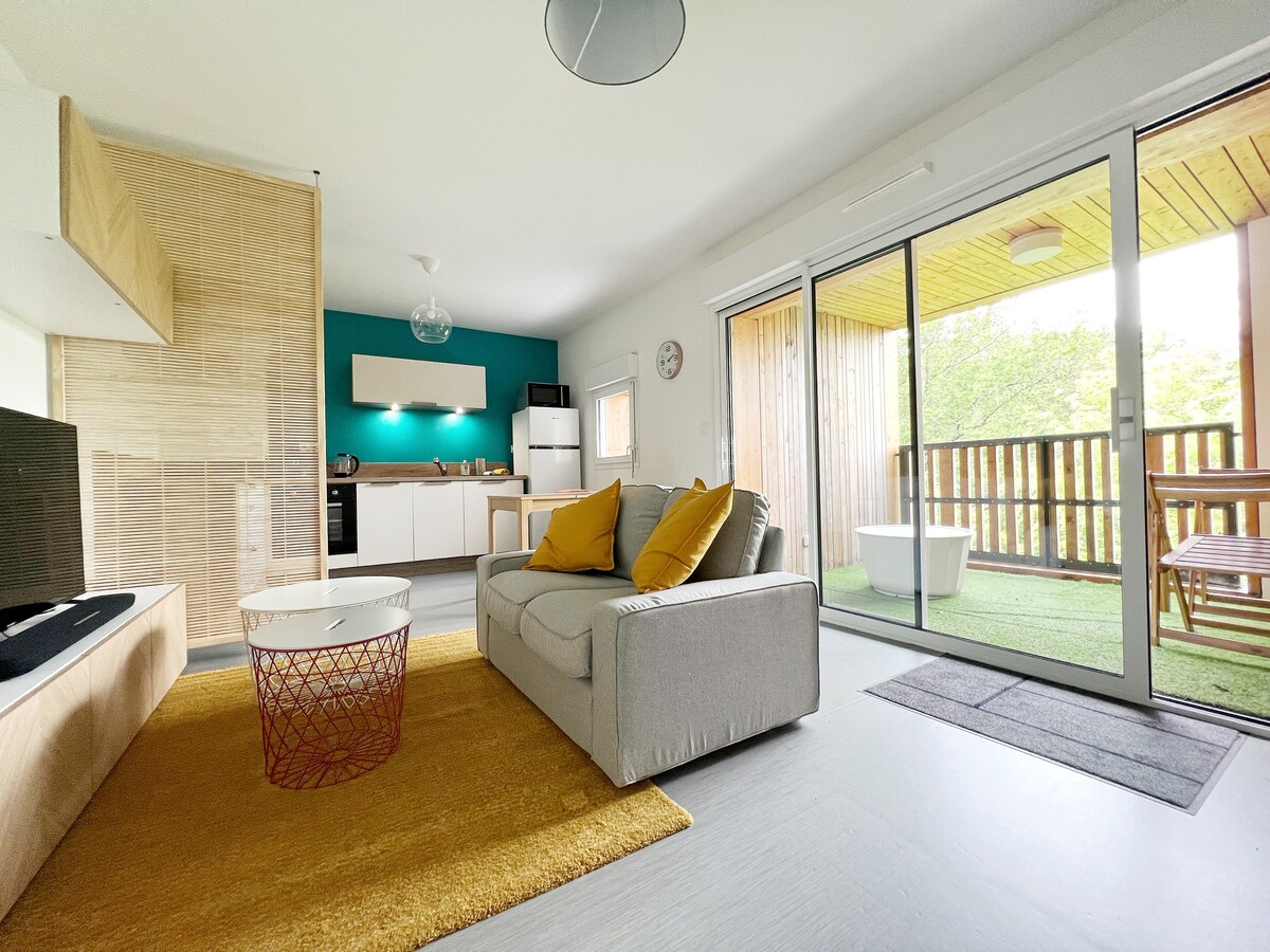 Vrlo lijep nedavni stan, uređen i ukusno namješten: kuhinja otvorena za dnevni boravak (TV), mezanin sa 2 kreveta za 2 osobe, uključujući 1 u niši, što svima omogućava da pronađu privatnost. Prostrano kupatilo. Bićete kod kuće, tiho sa svim uslugama u blizini.