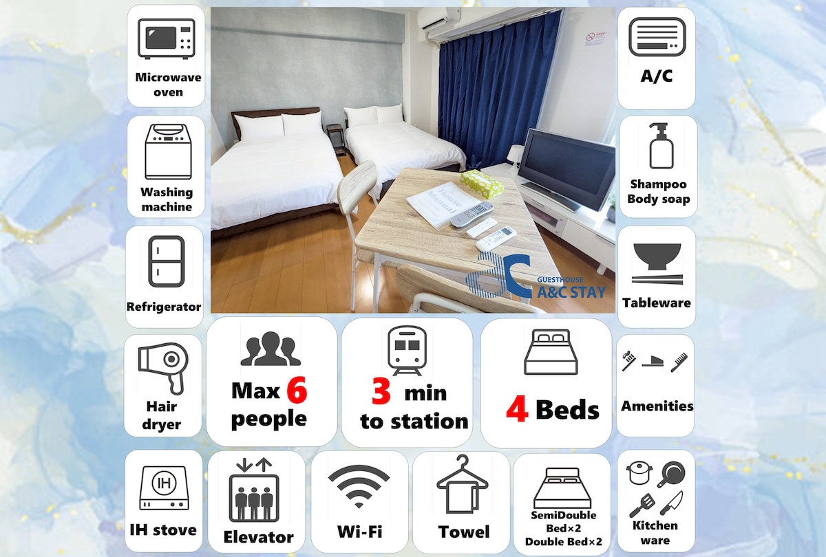 ユニバーサルスタジオ、大阪観光にお勧め・完全プライべート空間・1LDK,3bed・駅徒歩5分・4名迄