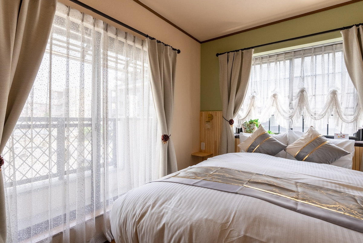 ◾️ お部屋の構成は。🏡 大阪府認定の家主居住型民泊。最大6人様。予約は1組様。 リスティングに掲載されている写真の全てが、ゲスト専有です。 【1階の全部(92㎡)】 キッチン/6人掛けテーブルのあるダイニングルーム/バスルーム/パティオ/寝室①クイーンベッド1台/寝室②敷布団3組 【3階の一部(18㎡)】 寝室③シングルベッド1台/ハーフバスルーム/バルコニー 寝室②は、居間と寝室が兼用のスタイルです。 日本の伝統様式をぜひ楽しんでください。🌸 私たち夫婦2人は、2階と3階に住んでいます。玄関ホールと2階、3階ホールは、ゲストとクロスする場合があります。 ◾️ 無料駐車場 🚗 敷地内に、要予約の1台分の専用駐車場。 ◾️ 日本家屋は紙と木 🌲 特に障子は、触ると直ぐに破けてしまいます。注意してください。 その時は、傷の大小にかかわらず、修理代5000円いただきます。💰