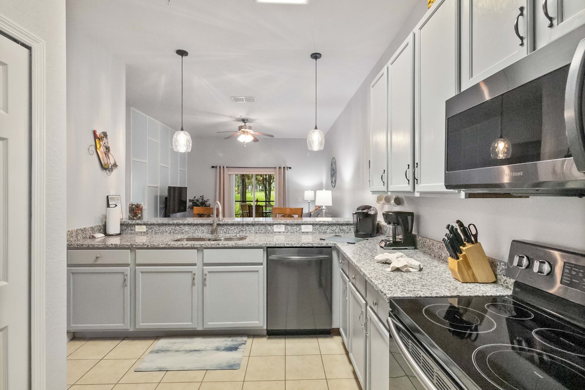 NOVO ažurirani uređaji od nerđajućeg čelika; NOVI kuhinjski pultovi od granita; NOVI tepih; hidromasažna kada za 6 osoba, NOVI komplet za terasu za 6 osoba; NOVI SMART TV! Uživajte u našem djeliću raja u odmaralištu Terra Verde! Terra Verde Resort je ograđena zajednica sa mnogim sadržajima: bazenom, igralištem, tenisom, mini golfom, pozorišnom sobom, opremom za vježbanje, igraonicom i ribolovom. Zabava za cijelu porodicu ili romantični odmor. Kuća u nizu ima privatnu hidromasažnu kadu na zadnjem dvorištu. Samo nekoliko minuta dijeli vas od parkova!