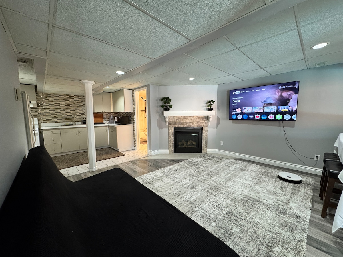 Dobro došli u svoj dom, daleko od doma! Ovaj podrum ima privatni ulaz i novoizgrađen je sa kupatilom i kuhinjskim sadržajima, prostranim dnevnim boravkom, unutrašnjim i spoljašnjim trpezarijama i udobnom spavaćom sobom. Uživajte u modernim pogodnostima kao što su Wi-Fi i televizor od 50"sa potpuno plaćenom pretplatom na Netflix. Vaša pogodnost je naš prioritet, sa označenim parking mjestom na prilazu za goste. U blizini se nalaze popularni restorani kao što su švajcarska planinska kuća, DQ itd.