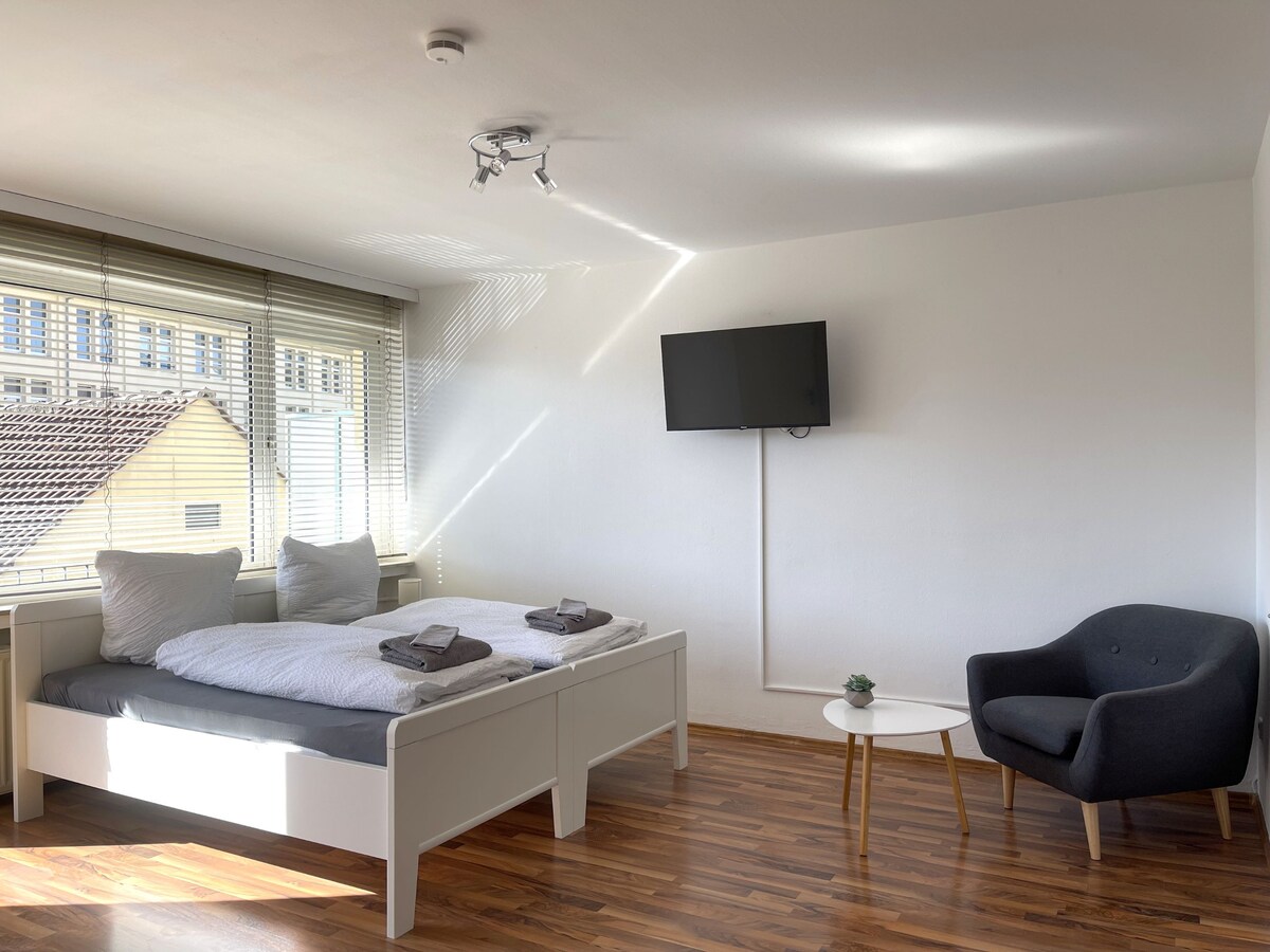 Dobro došli u naš moderan stan u srcu Osnabrücka! Nalazi se u centru, na samo 10 minuta od glavne železničke stanice i pet minuta do pešačke zone. Naš stan od 45 kvadratnih metara može da primi 4 osobe + bebu sa 1 spavaćom sobom i kaučem u dnevnoj sobi. Moderan namještaj, potpuno opremljena kuhinja, Wi-Fi, SmartTV. Prikladno za porodice sa krevetima za bebe i stolicom za hranjenje na zahtev. Do starog grada, dvorca i Osnabrückhallea stiže peške. Bez zabava. Radujemo se što ćemo se uskoro vidjeti!