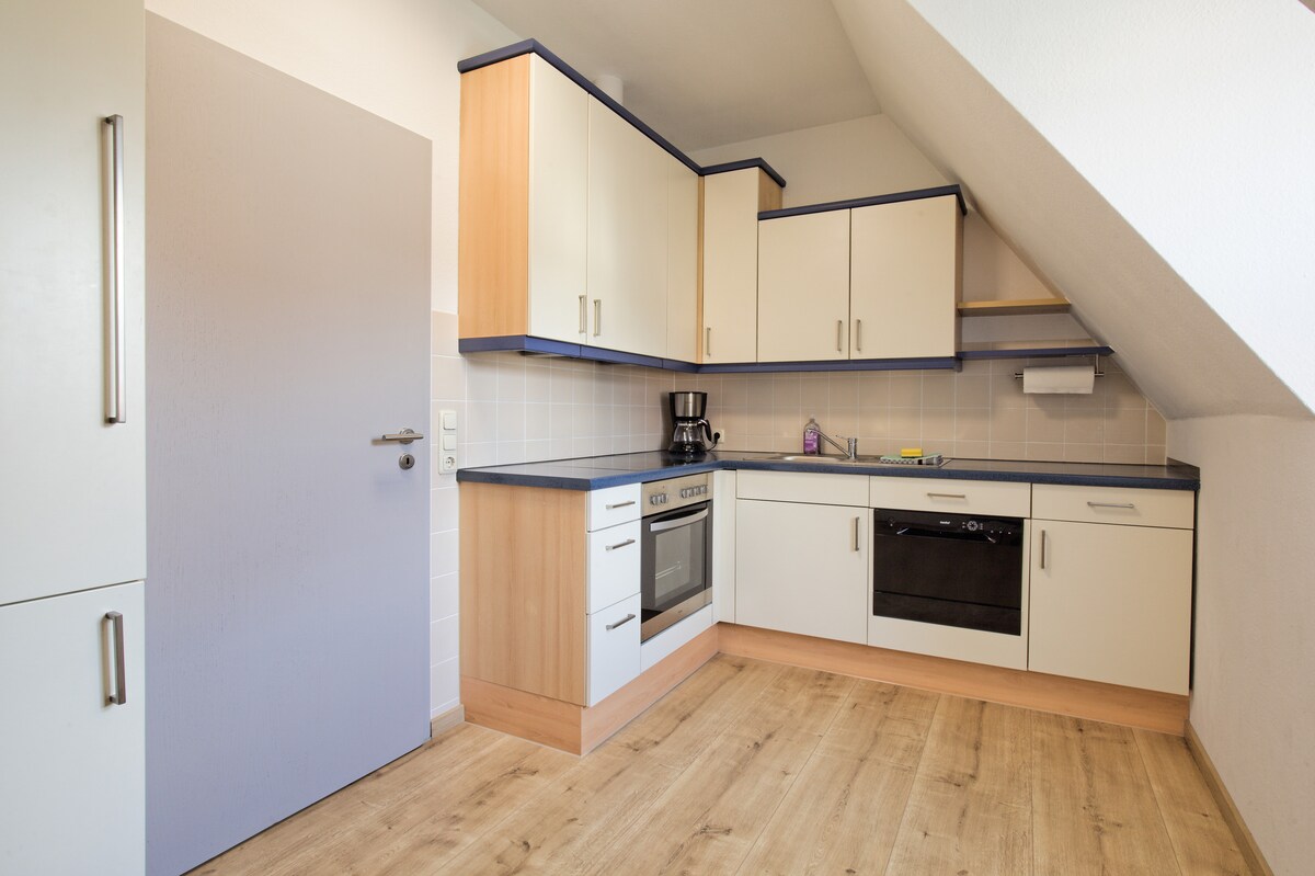 Opustite se u ovom posebnom i mirnom prostoru. Apartman DG na 2. spratu nudi 2 spavaće sobe, 1 dnevnu sobu i trpezariju, kuhinju i kupatilo. Kuća je nova zgrada i u skladu s tim unutrašnjost je u svetlim i prijateljskim bojama. Stan se nalazi na mirnoj lokaciji i ima predivan pogled na prirodu, gde možete da se opustite od svakodnevice. Oprema: podno grijanje, kompletno EBK uklj. Posuđe, itd. Tuš kabina, prozori od poda do plafona u dnevnoj kuhinji i trpezariji.