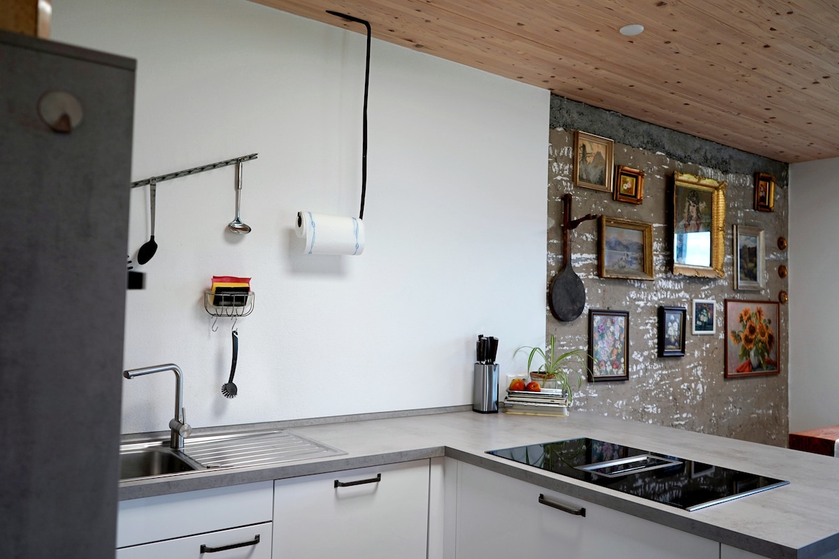 Čeka vas moderan prostran stan u ruralnom stilu. Seoska lokacija vas poziva da se opustite i opustite, ali zbog blizine Kempten, obližnjih sportskih i rekreacionih područja (Alpe, jezera Konstanca itd.), spa centara i mnogih drugih aktivnosti u slobodno vreme, još uvek nema dosade. Imamo porodičnu atmosferu i uvek smo na raspolaganju za pitanja i predloge! Nije prikladno za zabave, momačke večeri itd.! Psi su dobrodošli!