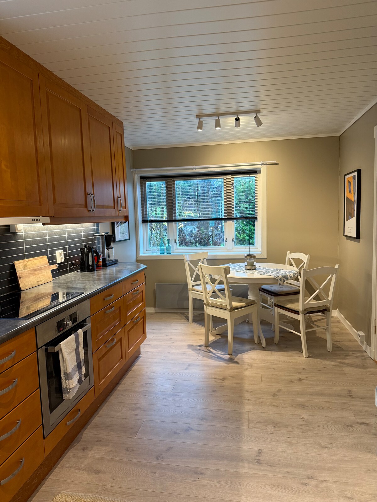 Udobna samostalna kuća na centralnoj lokaciji u Haugeu na Osteroiju. Kuća je na dva sprata i ima 3 spavaće sobe, dnevni boravak, kuhinju, kupatilo i mašinu za pranje veša. Tri besplatna parking mesta i autobuska stanica/autobuski terminal u blizini. Oko 45 minuta vožnje do centra Bergena i Fleslanda, što čini dom pogodnim za poslovna putovanja. Lijepa područja za planinarenje odmah ispred vrata i kratka vožnja do istorijske planinarske destinacije Kosdalssvingane i spektakularne Bruviknipe.