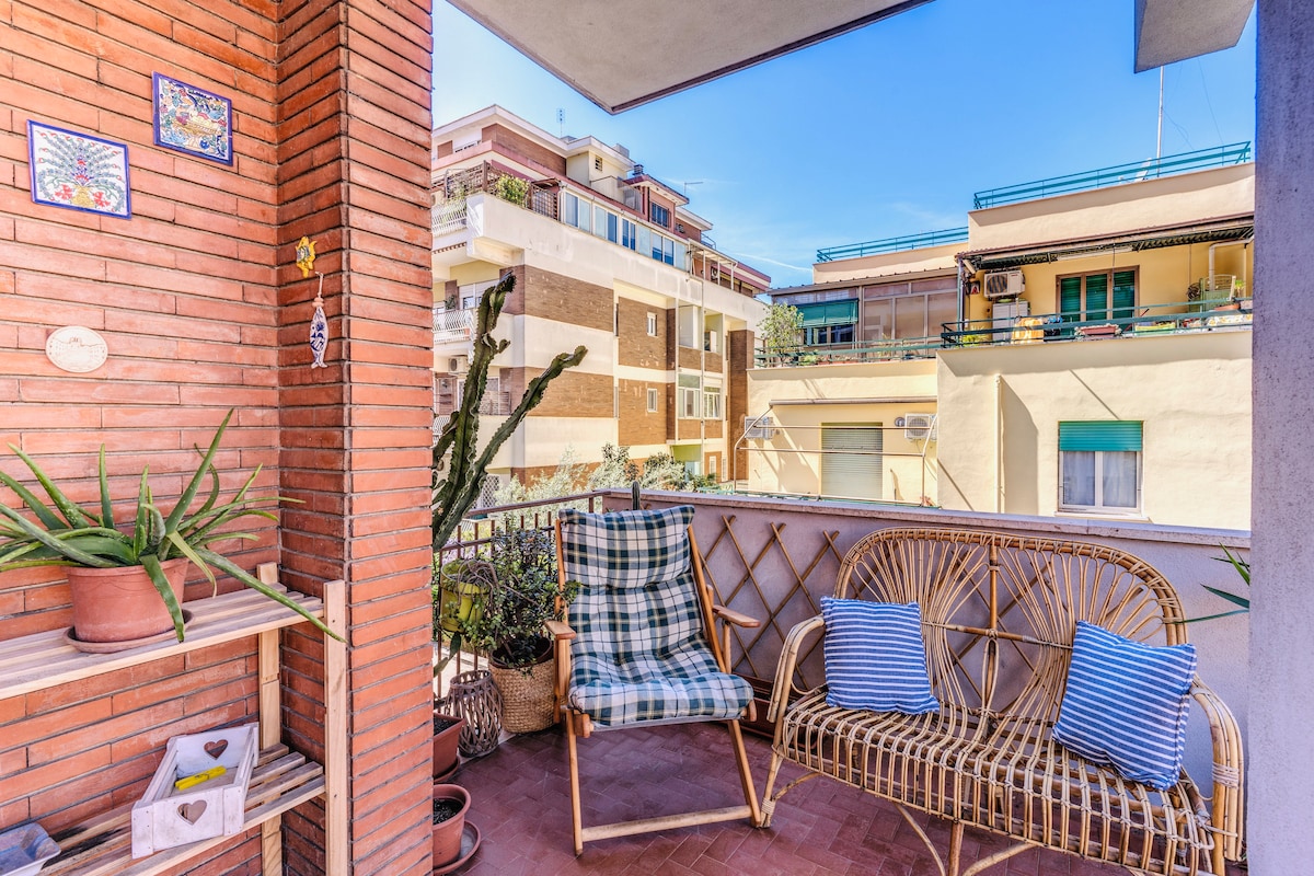 Na pola puta između centra grada i mora, stan od 35 m2 se nalazi u povišenom prizemlju stambene zgrade u veoma mirnom i tihom dijelu Rima. Odlična baza za posjetu Rimu, moru i Ostiji Antici, nekoliko minuta hoda od stanice metroa. Stan se sastoji od dnevne sobe sa čajnom kuhinjom, spavaće sobe i kupatila sa tušem. Gostima su na raspolaganju dva bicikla. Važno: Boravišna taksa je već uključena u ukupan iznos (6 evra p.p dnevno).