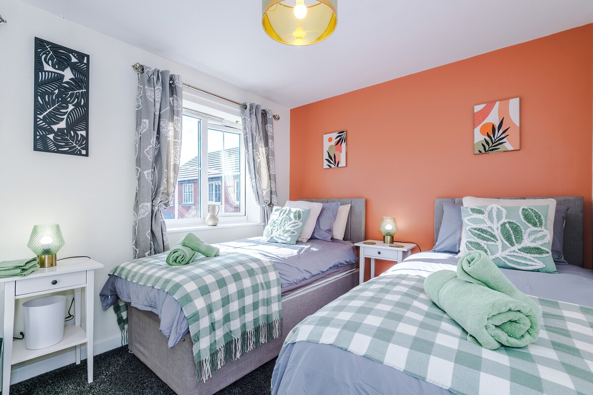 Jedinstveno smešten luksuzan, prostran i miran stan smešten u okviru velike bašte, a ipak udaljen samo 5-10 minuta hoda do centra grada Osvestri. Stan je dobro opremljen modernim uređajima i ima divan pogled na Šropšir. Dostupno je mnogo parking mesta, a zasebna vešernica je dostupna za korišćenje na licu mesta bez dodatnih troškova. Šifra ključa je dostupna za kasne prijave.