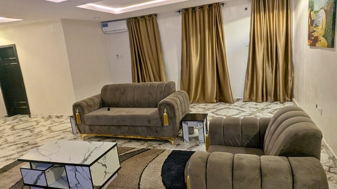 Najsigurnije odredište na kojem želite da odsjednete u Lagosu. Bezbjedno luksuzno imanje sa stabilnom snagom. Sve što vam je potrebno udaljeno nekoliko metara prije prijave. Bioskop je udaljen nekoliko minuta Pijace U blizini klima-uređaja RADE SAMO NA NACIONALNOJ MREŽI. 24 SATA neprekidno napajanje putem pretvarača je zagarantovano. Nema BUKE GENERATORA koja bi ometala vaš boravak. Namirnice na drugom kraju imanja, SUPERMARKET JENDOL prije prijave. Stan se nalazi na 3. SPRATU i nije pogodan za starije osobe. Cena je snižena iz tog razloga.
