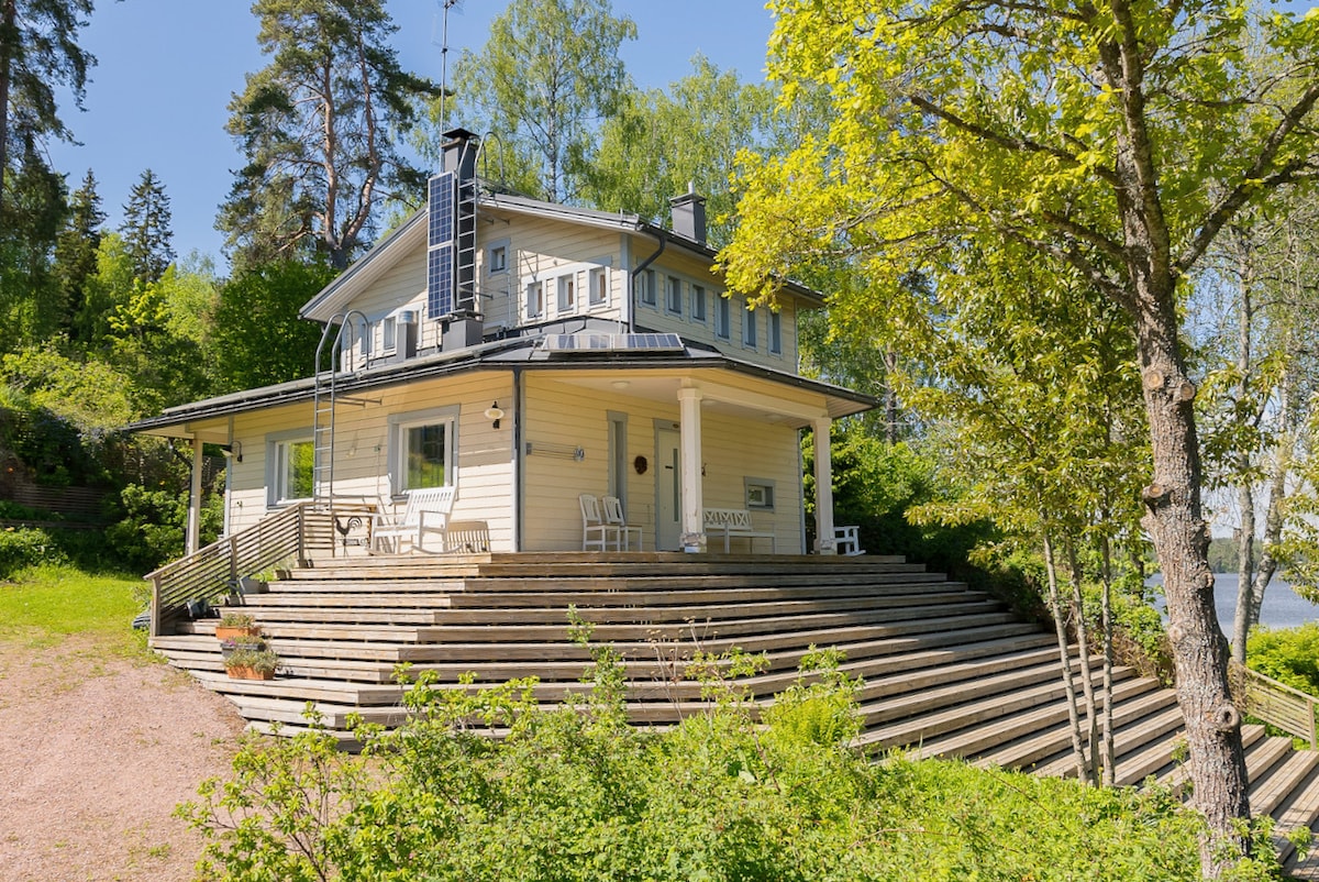 Vikendica se nalazi u nacionalnom parku Nuuksio na prelepoj padini obrasloj borovima, na obali jezera Ruuhilampi sa čistom vodom. Udaljenost od golf terena i parka za drvoseču u Vihdiju je 11 km. Glavna brvnara izgrađena je 1950-ih. Novija, manja brvnara izgrađena je 2012. godine. Obe imaju nostalgičnu atmosferu. Na obali se nalazi sauna iz 1958. godine, koju je dizajnirao Reima Pietila, a greje se na drva.