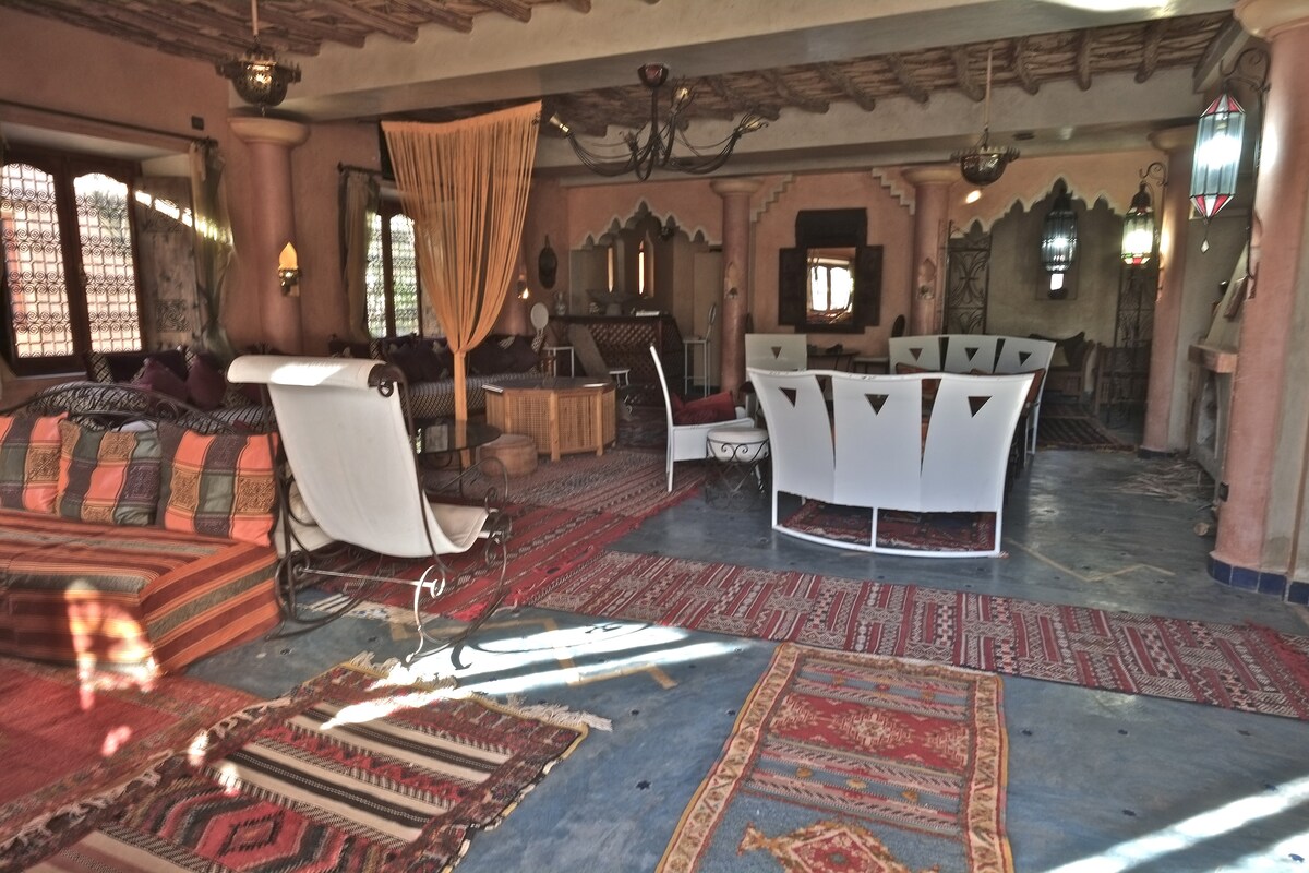 Uživajte u eleganciji iz prošlosti tako što ćete boraviti u našem kasbah izgrađenom na glini. Lepo uređen i sa jedinstvenim panoramskim pogledom. Kuća se nalazi u dolini dades na pola puta od Marakeša, a dine pustinje Merzuga je Čgaga sobe sa privatnim tušem i WC-om, zajednički prostori su 2 dnevna boravka, trpezarija, dve terase sa pogledom od 360 ° na dolinu dades. Besplatno parkiranje, besplatna internet veza sa optičkim vlaknima od 100 Mbps, restoran na licu mesta