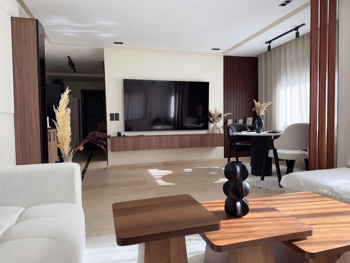 Appartement confortable, situé au centre d El Jadida Toutes sortes de restaurants, cafés et commerces sont à proximité Cet appartement moderne de 4 personnes avec 2 chambres offres tout ce dont vous avez besoin pour un agréable séjour L'appartement dispose d'une cuisine entièrement équipée, d'une connexion Wi-Fi rapide illimitée et d'une télévision avec Netflix Climatisation réversible Place de parking en sous sol et sécurisée a 100 mètres de la plage Lit bébé disponible dans l appartement