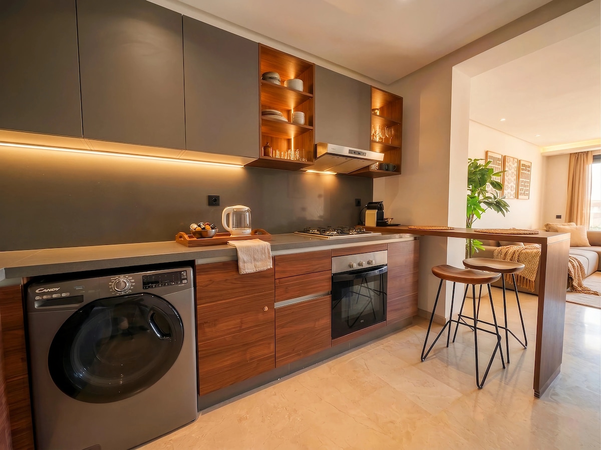Neki apartmani su mjesto gdje ostavljate svoje torbe. Drugi su tamo gdje ste ostavili svoju dušu. Ovaj skriveni dragulj je drugi. Smješten u srcu najživahnije četvrti Kazablanke, ovaj stan je dizajniran kao predmet želje: smaragdno zeleni luk od zeligea, stočić za kafu od masivnog drveta, ručno izrađena keramika, kauč ružičasto-bež boje i svjetlost koja ispunjava svaki kutak. Maroko o kojem ste sanjali, u savremenom dizajnu. Bulevar Zerktuni, nekoliko koraka od Kula bliznakinja.