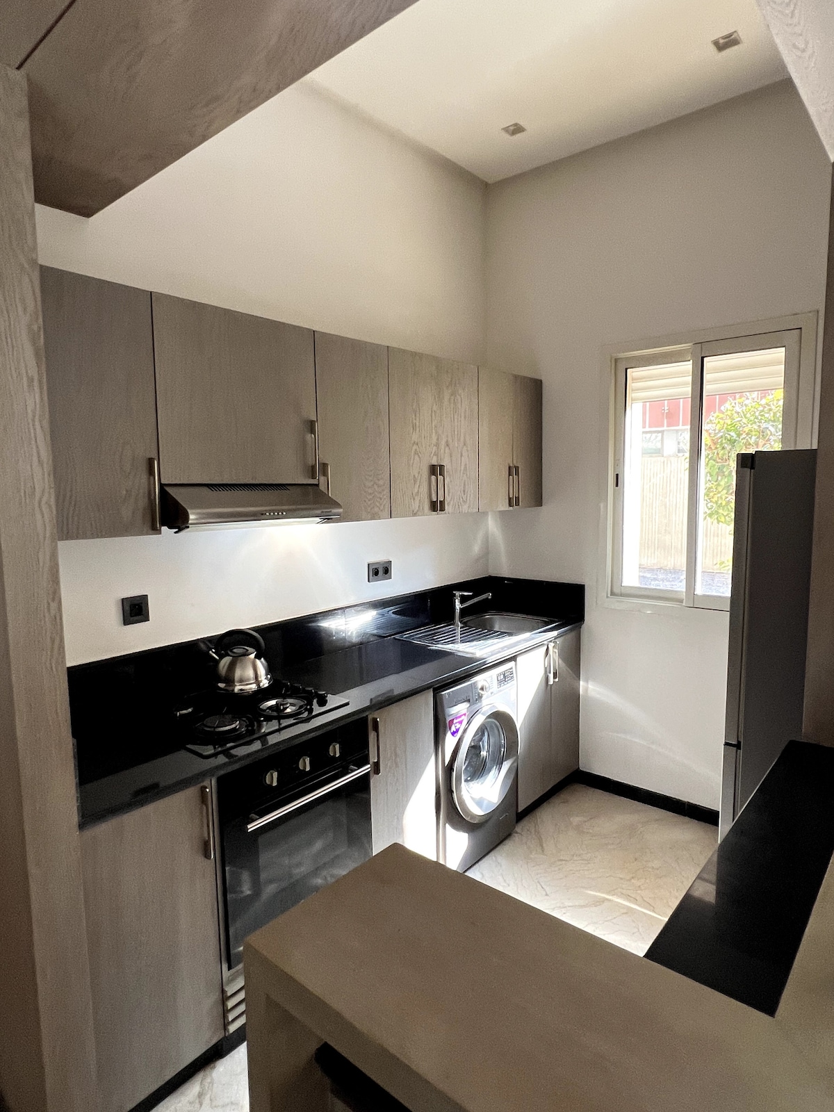 Boravite u elegantnom stanu na idealnoj lokaciji u srcu finansijskog centra Kazablanke (CFC), iznad tržnog centra AERIA. Osmišljen da pruži udobnost i podstakne produktivnost, ovaj stan ima svijetao, pažljivo uređen prostor, potpuno opremljenu kuhinju i balkon s pogledom na otvoreno – savršeno za opuštanje nakon radnog dana. Uživajte u mirnom, modernom i bezbjednom okruženju, samo nekoliko koraka od poslovnih kancelarija, restorana i svakodnevnih sadržaja.