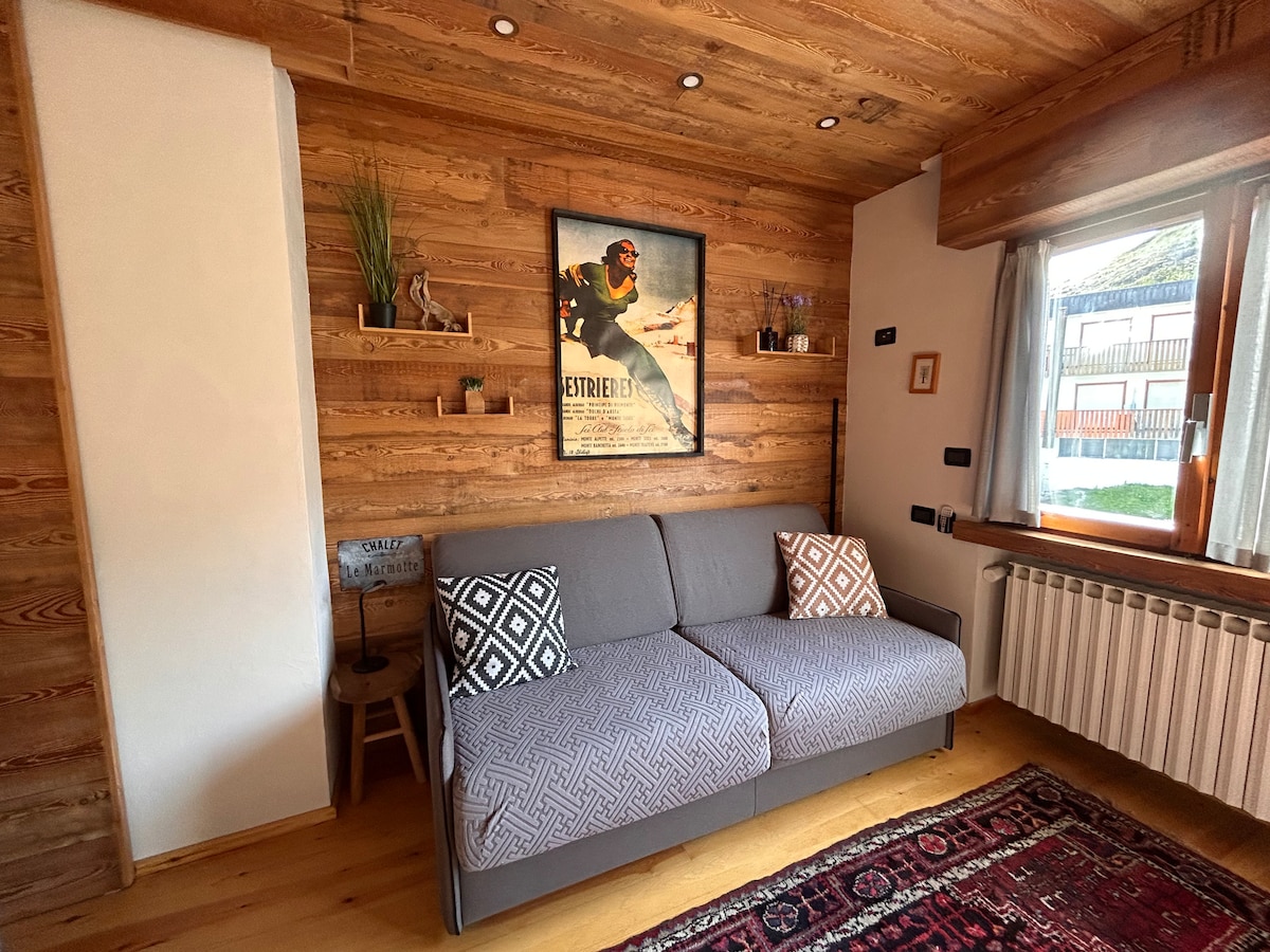 Dobro došli u Le Marmotte, vaše prijatno alpsko utočište u Sestriereu! Ovaj topli i funkcionalni studio savršen je za opuštanje nakon dana provedenog na padinama ili planinskim stazama. Samo nekoliko minuta hoda od ski liftova, nudi Wi-Fi, potpuno opremljenu čajnu kuhinju i svu udobnost doma. Uživajte u kompletu dobrodošlice, čistoj posteljini i pažljivo osmišljenim detaljima za opuštajući boravak - u bilo koje doba godine