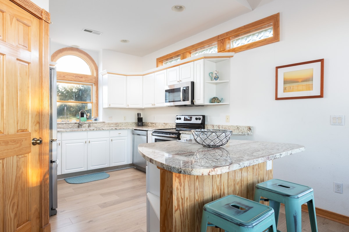 Uživajte u boravku na svijetloj lokaciji na Outer Banksu, samo nekoliko koraka od plaže, s pogledom na okean i prozračnim rasporedom u krajnjem dijelu objekta koji propušta dodatno prirodno svjetlo. Ovaj renovirani stan na obali pruža udoban, otvoren osećaj sa fleksibilnim prostorom, uključujući odvojeni dodatni apartman za dodatnu privatnost. Oprema za plažu, bicikli i sadržaji u odmaralištu su uključeni, kao i lokalni savjeti i brza podrška naše porodice iz OBX-a, koja dočekuje goste od 1973. godine.