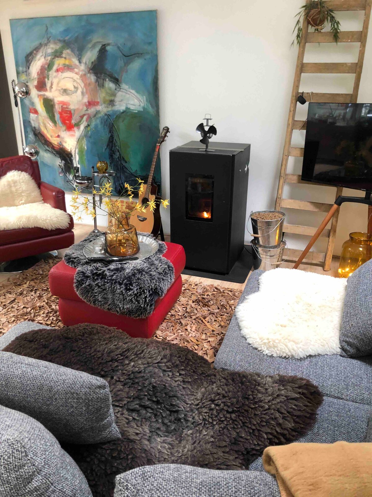 Luka 's Hut, naša prelepa eko-kabina, nalazi se na obalama reke Ganzendiep u Overijssel-u. Ogromni prozori pružaju zadivljujući holandski pogled na reku, travnate livade sa kravama i ovcama i živopisno selo u daljini. Reka je tiha voda, pa uzmite saunu i plivajte, izvadite kajak, veliki kanu ili SUPboard. Imamo toplotnu pumpu za podno grejanje i korišćenje reciklirani predmeti su tako šarmantna peć na drva, fantastična kupka, potpuno opremljena kuhinja, bicikli, kamin i trampolin.