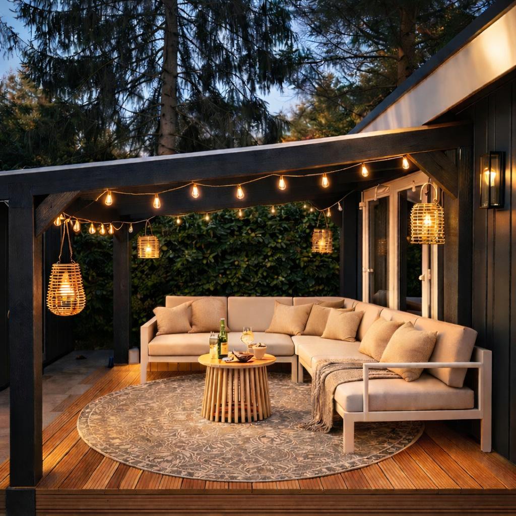 Minijaturne kuće sa prostorom za sjedenje na otvorenom