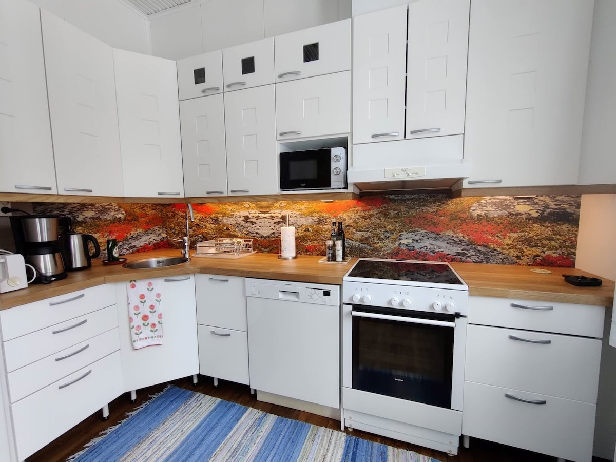 Lijep i moderan stan, koji se nalazi u centru grada. Nedavno renovirano 2019. godine. 7 minuta hoda do centra grada. Miran kraj. Dobra sofa koja se može rasklopiti ako je potreban dodatni prostor za spavanje, uključen je debeli dušek, lep trpezarijski sto i udobne stolice. Kuhinja i kupatilo. Dobri kreveti. Popluni visokog kvaliteta. Roletna u spavaćoj sobi. Rerna i ventilator. Dostupni su čaj, kafa, čajnik, začini itd.