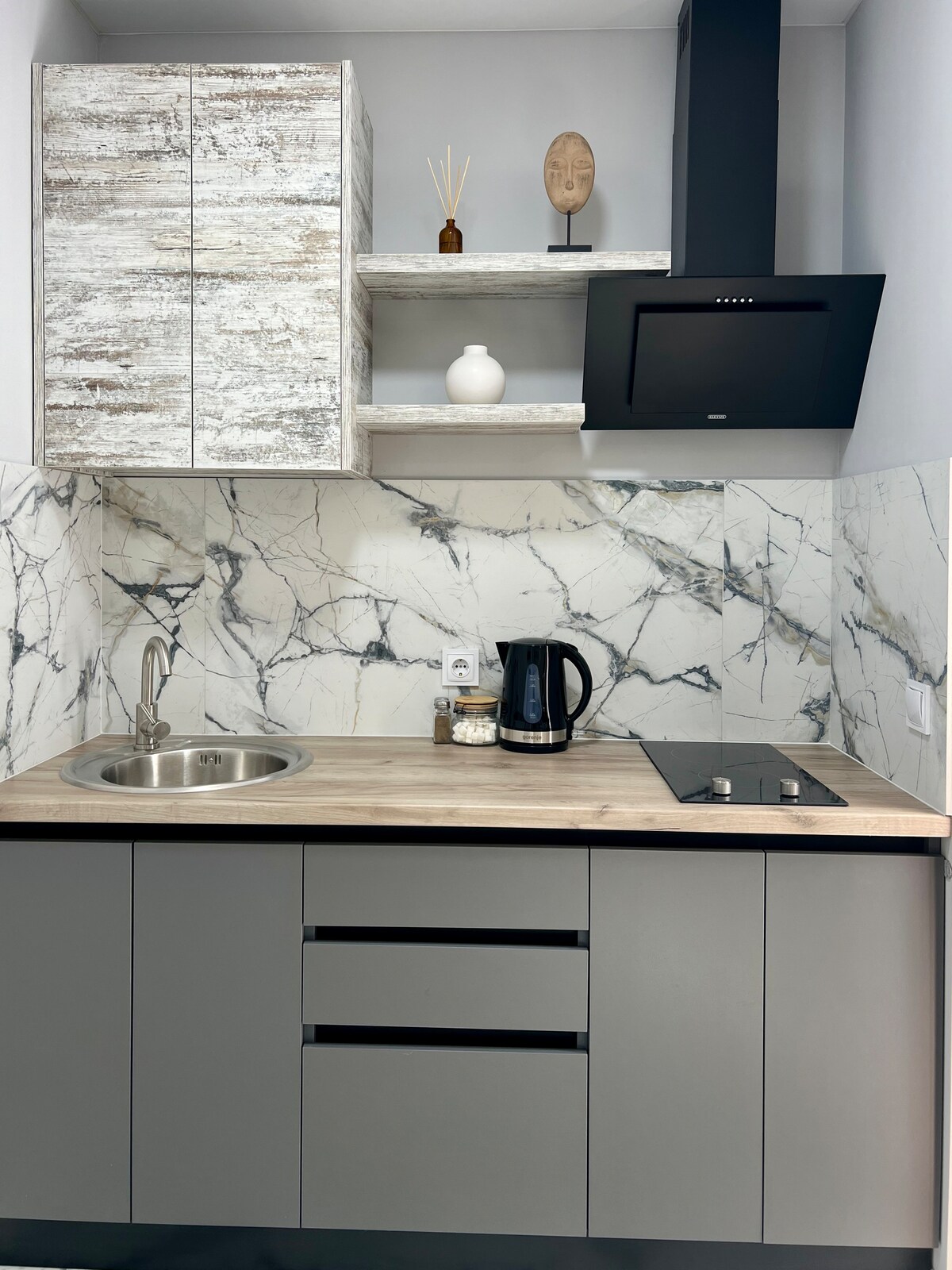 Smještaj se nalazi u centralnom dijelu – biće vam udobno da stignete gde god vam je potrebno. Ako tražite prostor i udobnost, tu ste! Moderan stan sa zasebnom spavaćom sobom i kuhinjom u dnevnom boravku je spreman da vam pruži udobnost najzahtjevnijim gostima. Bela posteljina, ortopedski dušek, mekani krevet će vas uznemiriti i pružiti vam pravi odmor. Posmatranje zalaska sunca uz šolju čaja sa voljenom osobom preporučuje se na našem balkonu.