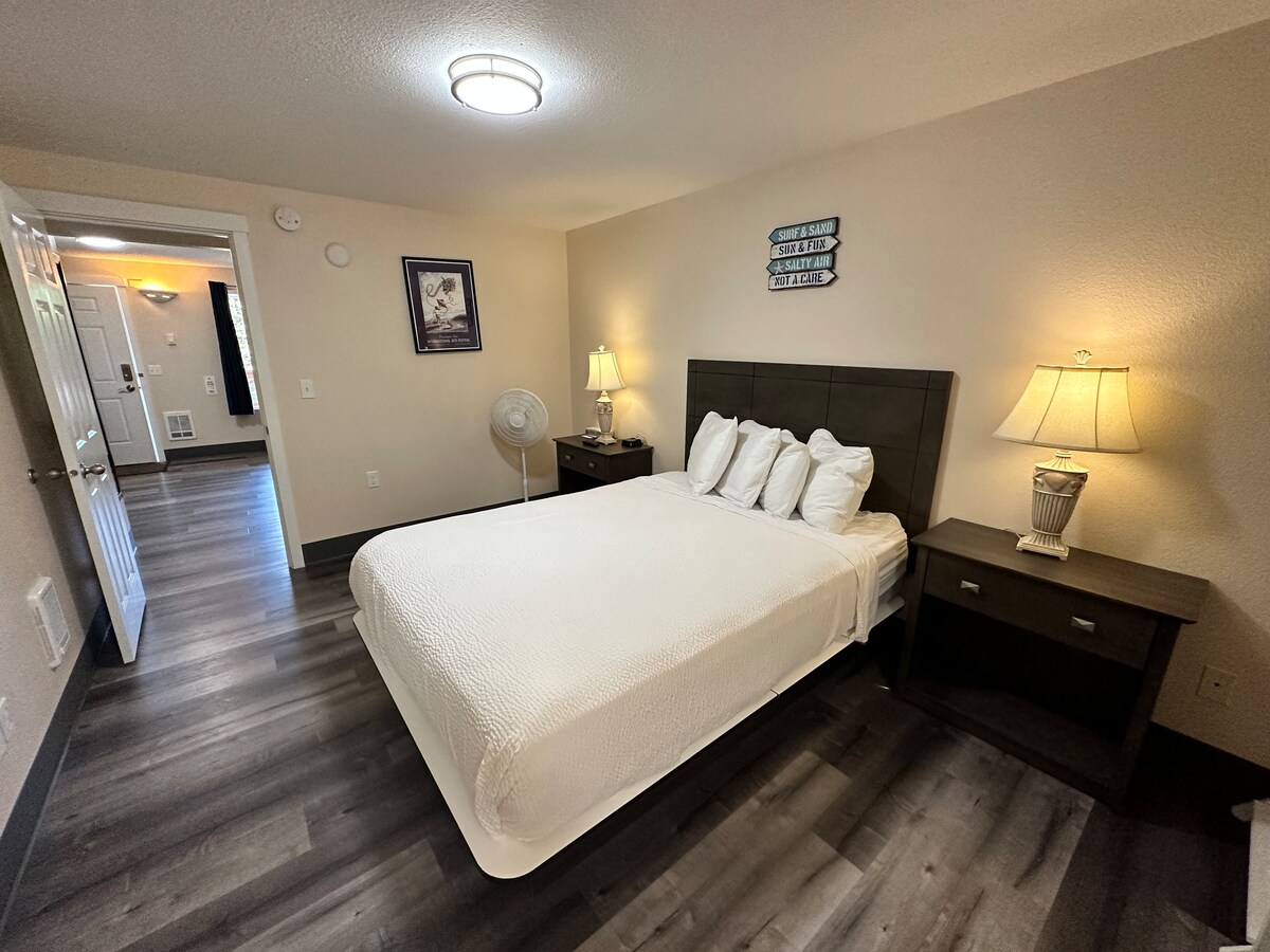 Nalazi se na manje od 10 minuta hoda do staze Discovery Trail duž Tihog okeana i povoljno se nalazi u blizini restorana, prodavnica i aktivnosti u centru Long Biča. Portland je udaljen 2 sata vožnje, a Sijetl 3 sata. Prostrani bračni apartman sa bračnim krevetom, sa dva bračna kreveta i kaučem na razvlačenje, kompletnom kuhinjom, Wi-Fi mrežom, može da primi do 7 osoba, a nalazi se u hotelu Coastal Inn and Suites.