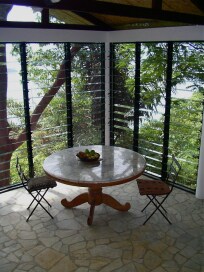Kameni i drveni bungalov je idealan za parove ili porodice do 6 osoba. Trpezarija ima čajnu kuhinju pa možete da izaberete da kuvate ili da naručite iz glavne kuhinje. Velika dnevna soba/ dnevni boravak ima dva kreveta za jednu osobu i kauč. Sobe imaju pogled kroz krošnje drveća preko okeana. Prirodna ventilacija i ventilatori kombinuju se kako bi se povećao hladan planinski povetarac bez buke i ugljeničkog otiska klima uređaja. Zvuci prašume okružuju vas, a majmuni se često igraju na obližnjim drvećem.