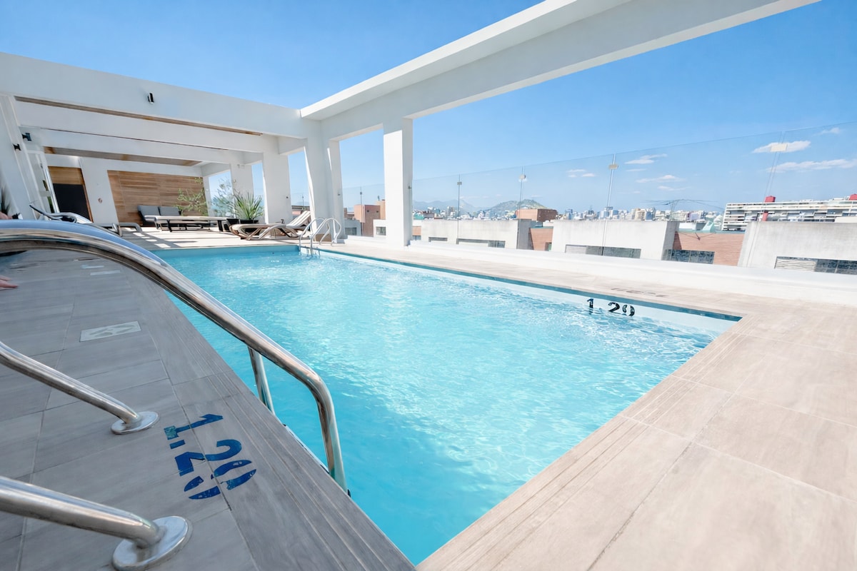 Suites ubicadas en el corazón de El Golf, zona segura y exclusiva de Las Condes, nuestras suites combinan el diseño moderno y minimalista con la calidez de un hotel boutique a solo 150m del Metro Alcántara. Cada unidad está equipada para brindar máximo confort, con acceso a una piscina panorámica en el rooftop, lavandería común (costo adicional) y parking (incluido o con costo extra según la unidad). Disfruta de una ubicación privilegiada a minutos de los malls Costanera Center y Parque Arauco.