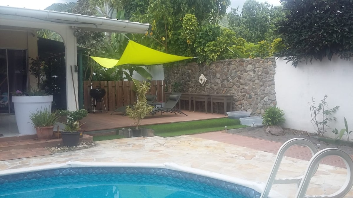 Smešten u bujnom zelenilu, ovaj tipični drveni svetionik će odmah promeniti vaš pejzaž. Dobro opremljen, funkcionalan i pun šarma, ima privatni pristup. Nalazi se u mirnom i bezbednom prebivalištu, na 10 minuta od aerodroma, na 5 minuta od prodavnica, plaža i aktivnosti na vodi. Koktel pored bazena sa pogledom na Pacifik i ostrvo Morea? Oko vas je veličanstvena višebojna drvena bašta, Birdong ... raj na Zemlji;-)