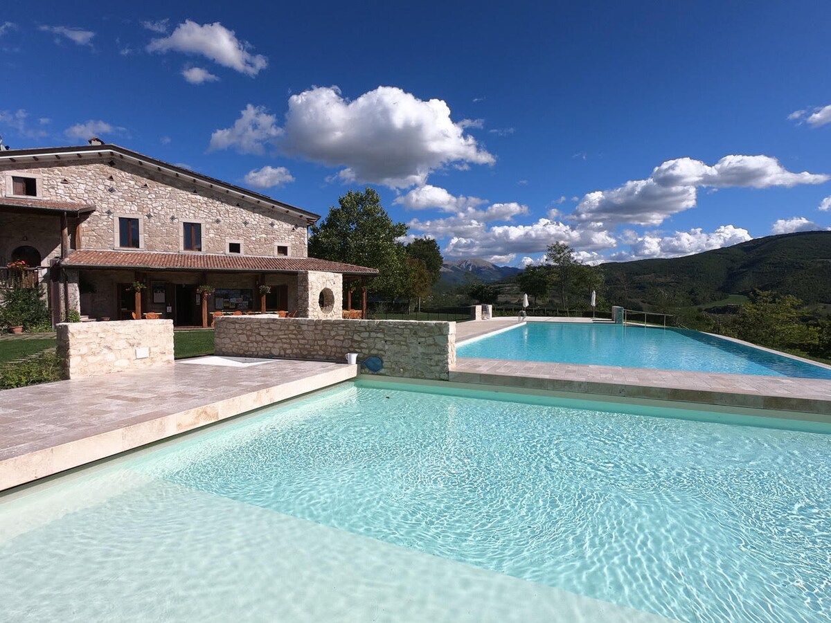 Il Casale è circondato da 6 ettari di terra e si trova a 7km dal Ponte Tibetano di Sellano, a 20 da Rasiglia, a 20 da Norcia, a 28 da Cascia e a 8 dalle Terme di Triponzo. Vicino al Parco Nazionale dei Sibillini e ai fiumi Corno e Nera, dove stagionalmente è possibile pescare e praticare rafting, è ideale per la vita all'aria aperta. Bancomat, negozi, bar e ristoranti nel raggio di 2km. Percorsi trekking e Mountain bike nelle vicinanze. BBQ e forno a legna esterni. Amici Pelosi, benvenuti!