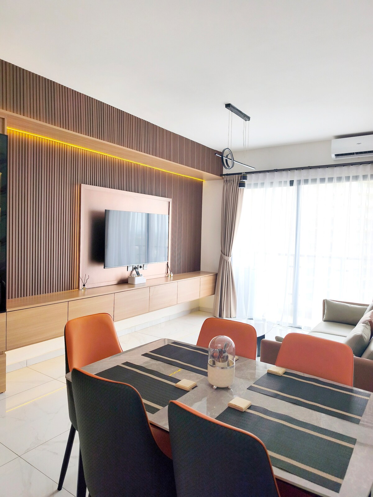 Opustite se sa cijelom porodicom u ovom mirnom smještaju. Stan je okrenut prema vratima prilaza i bazenu, a unutra ima 2 sobe. Čista soba kao kod kuće, opremljena raznovrsnim kompletnim kućnim aparatima, sadržajima za bazen i fitnes prostorima. Prijatno mjesto koje se nalazi u centru grada koje se nalazi pored najvećeg i najpotpunijeg tržnog centra Aeon u BSD-u, u blizini Ice BSD-a i dječijeg igrališta