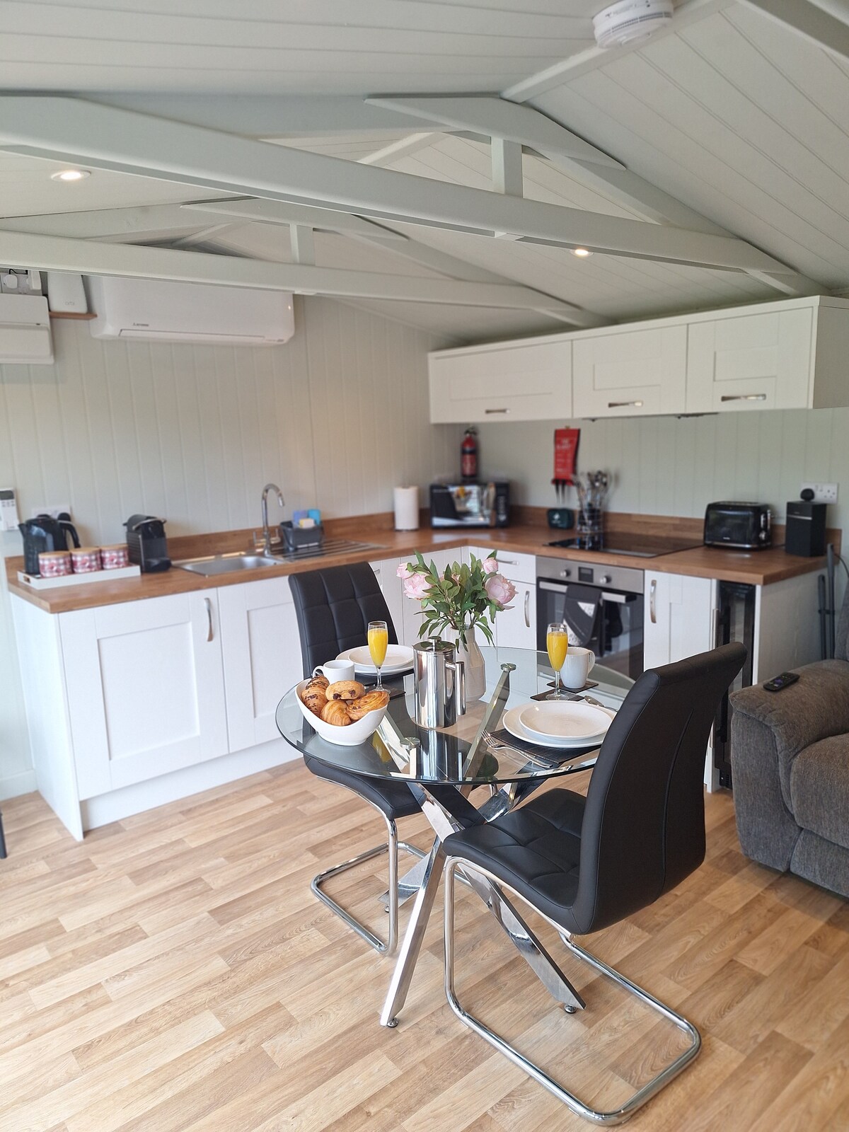 - Samostojeća planinska kuća bungalova u mirnom parku za odmor nedaleko od pogleda na okolnu prirodu - Spavaća soba s bračnim krevetom i dva odvojena kreveta - Kuhinja sa trpezarijskim stolom, mašinom za veš, frižiderom sa zamrzivačem, mikrotalasnom rernom i priborom - Dnevni boravak sa TV-om, x 2 kauča, unutrašnja vrata do travnate površine sa pogledom - Kupatilo sa kadom, električni tuš, umivaonik, električna ograda za peškire i podno grejanje ako je potrebno - Električna energija za metar kovanice od 1 £ - Zajednički travnjaci okružuju planinsku kuću, sedišta i stolove sa prednje i zadnje strane
