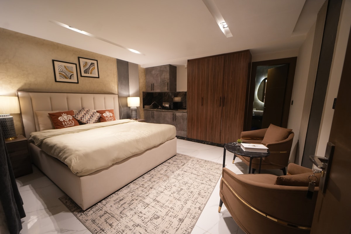 Step into refined comfort. Our Boutique Luxe Suite blends soft aesthetics, warm lighting, and timeless design — all at Kashmir Point, right on Main Bank Road. Enjoy 24/7 housekeeping, secure parking, a rooftop live BBQ, and an intimate private cinema under the stars. With a restaurant on the top floor, every moment feels curated, cozy, and beautifully luxurious.