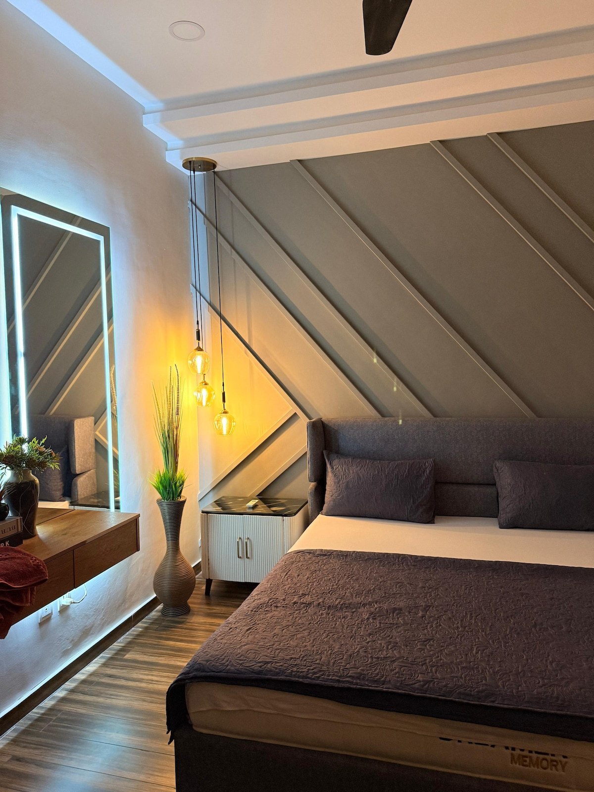 Dobro došli u Sumrak – jedinstveni stan na temu mjeseca u DHA fazi 6 🌙 • 1 spavaća soba s udobnim osvjetljenjem i modernim dizajnom • Elegantan salon sa umjetničkim dekorom i pametnim LED diodelom od 50inča •Potpuno opremljena kuhinja sa šporetom, mikrotalasnom rernom i kuvalom • Brzi Wi-Fi i jednostavan samostalni ulazak Odlična 📍 lokacija u blizini Raya Commercial, Dolmen Mall, Ring Road i mnogih kafića Vaš savršen spoj udobnosti i stila. To je najbolja opcija, bilo da putujete poslovno ili u slobodno vrijeme.