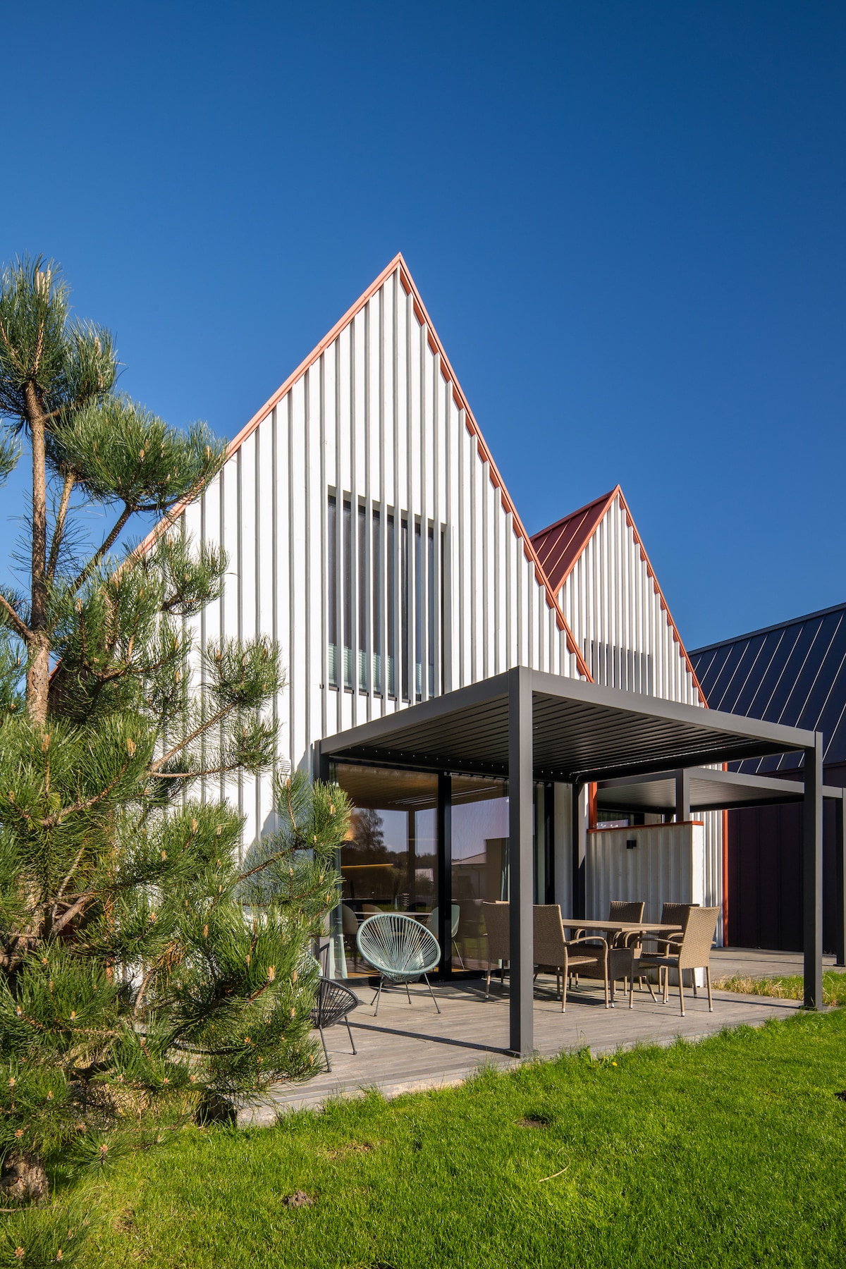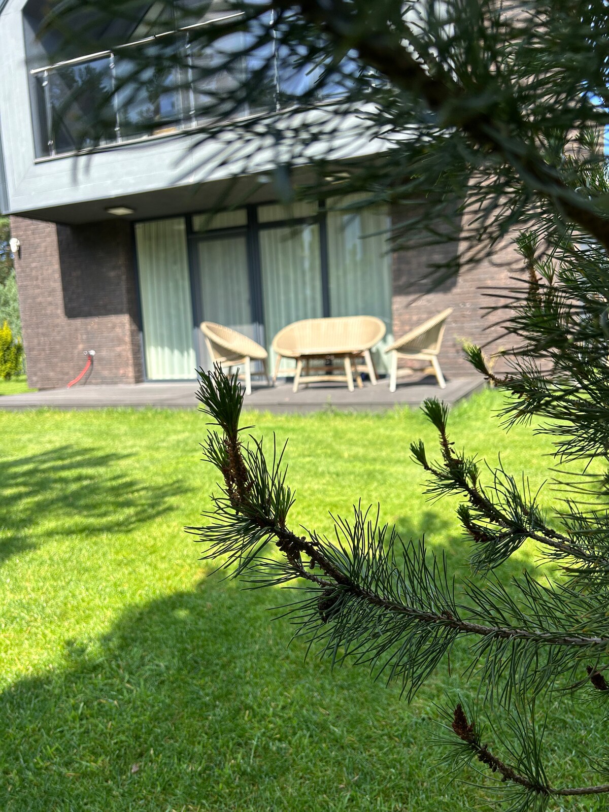 Naš blok je osmišljen da smanji osjećaj drugih turista i prolaznika. Prostrano dvorište od 2,8 aro ograđeno je visokom drvenom ogradom. Velika terasa za duge i prijatne večeri! Ovdje se možete opustiti i uživati u sporom protoku vremena. Osvježavajuća kuća u potkrovlju s visokim plafonima između vodenog parka Kunigiškės i mora! Vratite snagu, odmorite se i stvarajte. Najudobniji za boravak za 4 osobe, 6 osoba takođe može biti smješteno ako je potrebno. Divan danski kauč sa udobnim dušekom na rasklapanje!