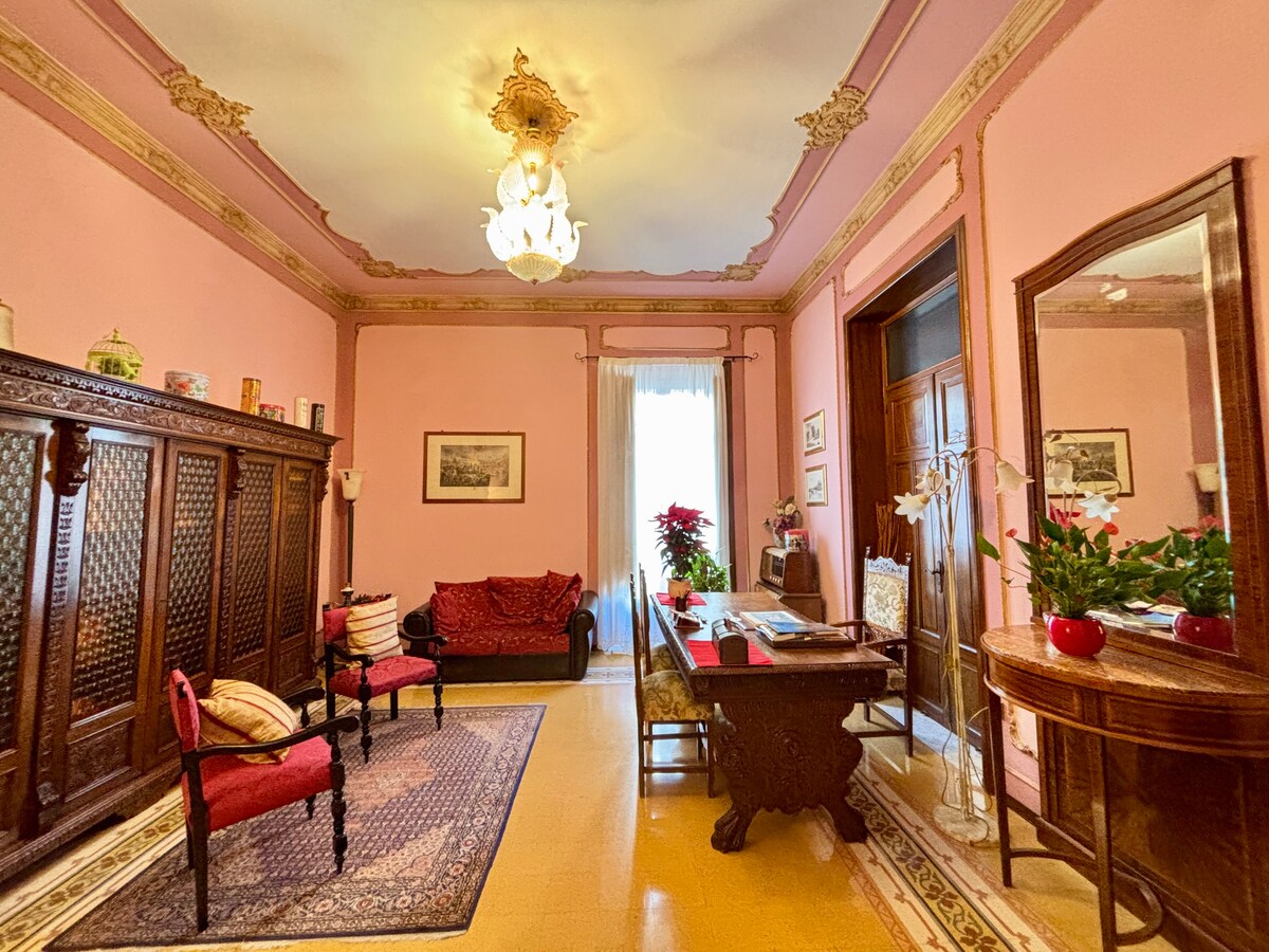 Vrlo elegantan stan na centralnoj stanici u secesijskom stilu: ulaz, dnevni boravak-studio, trpezarija, kuhinja, 2 kupatila, 3 spavaće sobe, kauč na razvlačenje. Smještaj na 2. spratu sa liftom, klima-uređajem, čaršafima, peškirima, fen za kosu, opremljenom kuhinjom: mikrotalasna pećnica, čajnik, mašina za pranje veša itd. Pogodno za dolazak do najljepših mjesta na Siciliji zahvaljujući blizini centralne stanice odakle polaze autobusi i vozovi. Prevoz do i od aerodroma na zahtjev uz naknadu.