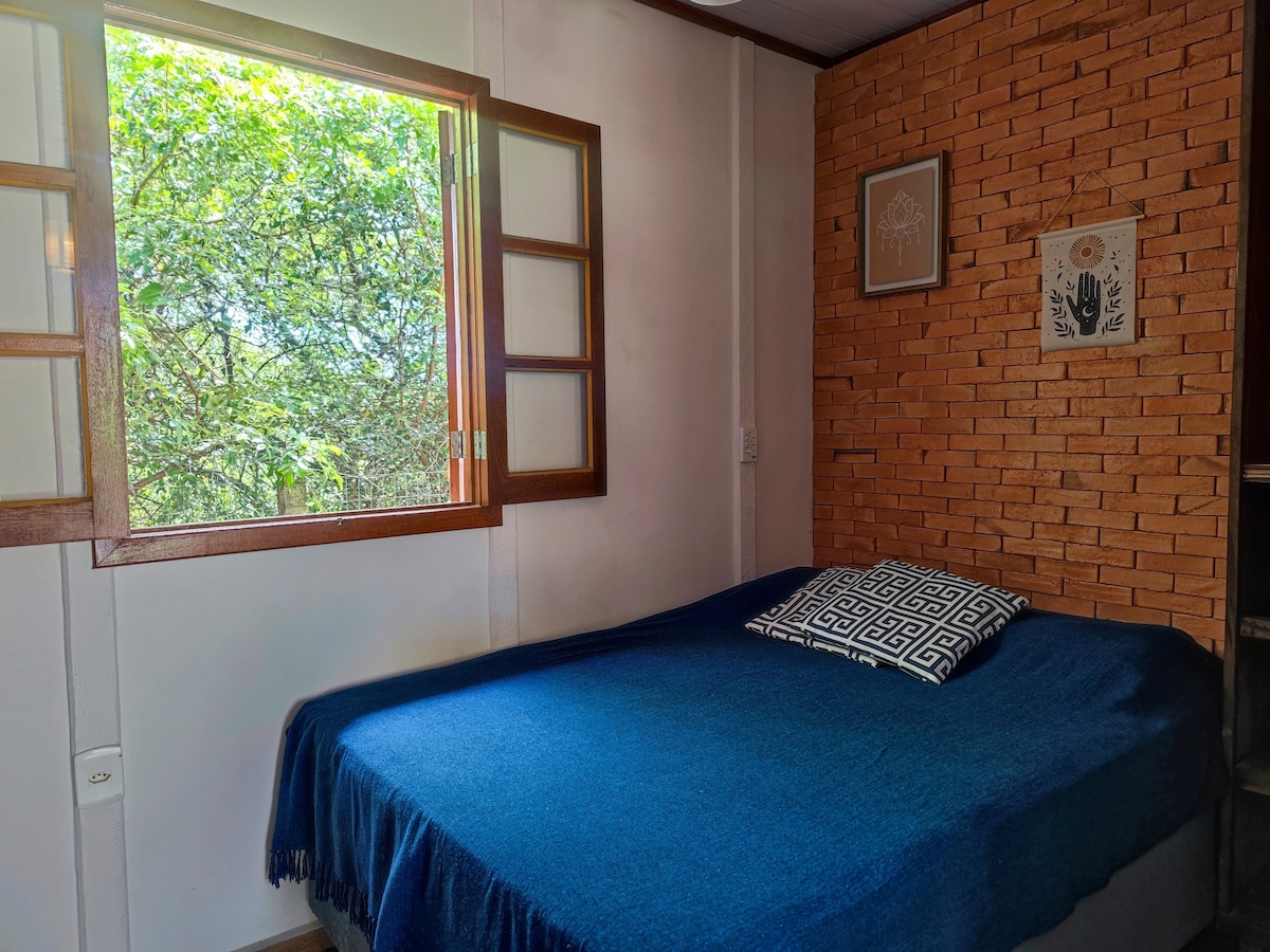 Planinska kuća u mirnom komšiluku, ali dobro centralizovana, sa potpunom privatnošću i u blizini lokalnih prodavnica i plaža. Do plaža Guarda do Embaú, Praia de Baixo i Praia de Cima, u Pinheiri, lako se pristupa peške. Ovde možete da se odmorite usred prirode. Apartman ima dovoljno ventilacije i privatnosti. Moći ćete da se odmorite u visećoj ležaljci sa pogledom na baštu sa potpunom slobodom.