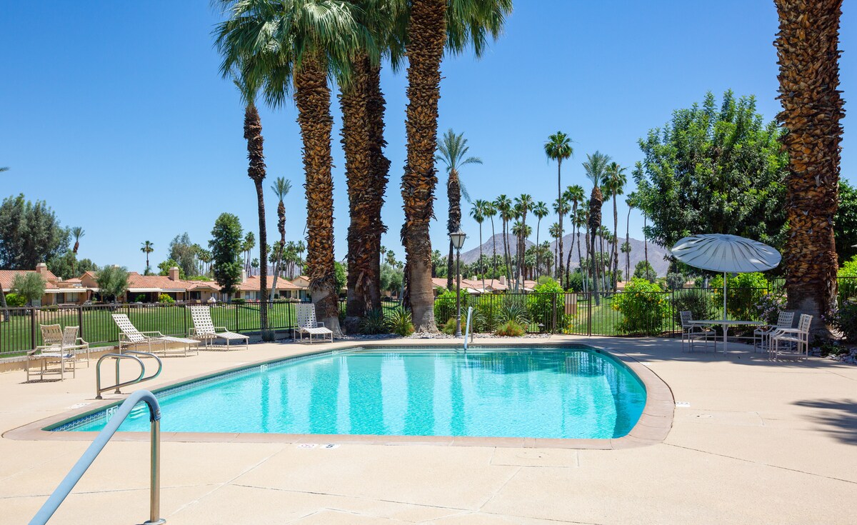 Ova elegantna pustinjska oaza savršena je za grupni odmor! Uživajte u grijanom bazenu i spa centru u stilu odmarališta, ugrađenom roštilju i pristupu kamperu. Smještaj s 5 spavaćih soba i 2 kupatila (uključujući privatnu spavaću sobu) za 10 osoba s 2 bračna kreveta, 2 bračna kreveta (širine 150-179 cm) i duplim krevetom (širine 150-179 cm). Nalazi se na samo 10 minuta od Coachella, Stagecoach i Indian Wells Tennis Garden, 15 minuta do Palm Deserta i Akrisure Arene i 45 minuta do Joshua Tree. Okruženi vrhunskim terenima za golf i slikovitim pogledom na pustinju!