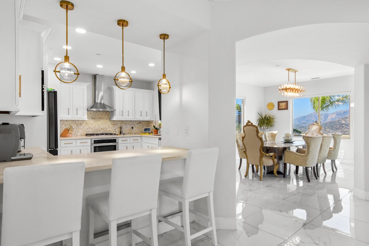 3 spavaće sobe 1 potkrovlje u kupatilu (2 odvojene strane), kuća za goste otvorenog koncepta. Vrlo miran odmor u Istočnom San Dijegu. Uživajte u prelepom okeanu i pogledu na planine tokom dana, a zatim se opustite u đakuziju sa zalascima sunca koji oduzimaju dah i gradskim svetlima noću. Najbolji pogled u San Dijegu! Samo 25 minuta od aerodroma i plaža SD. Samo nekoliko minuta od 2 lokalne vinarije i kazina. Kuća može da primi 6 kreveta, ali možete da pozovete goste na jedan dan uz naknadu. O cijenama događaja će se raspravljati po događaju. Živimo u glavnom domu