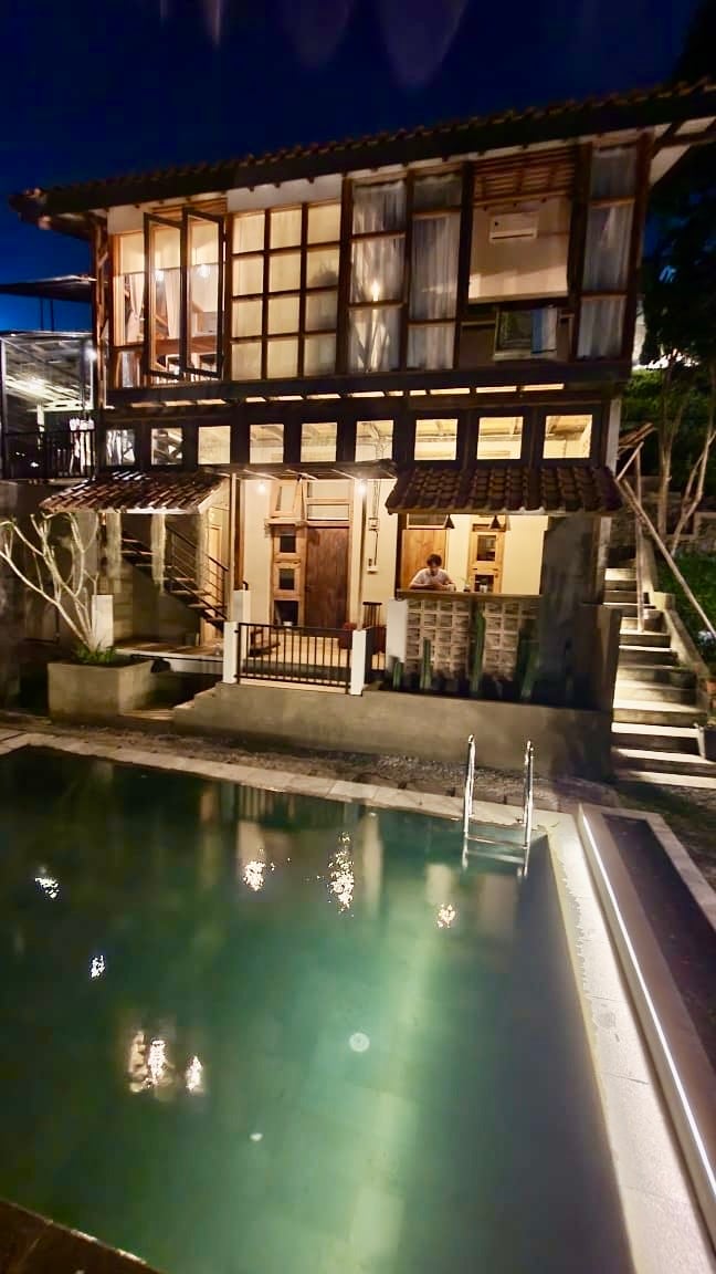 kigai Villa with Coffee & Flower Farm Experience – Surrounded by Nature & Mountain Views. Pobjegnite u mirno skrovište smješteno u šarmantnom selu u podnožju planine Salak, sa pogledom koji oduzima dah na planinu Gede, planinu Pangrango i svjetlucava gradska svjetla noću. Naša vila nudi jedinstven smještaj u kojem se spajaju priroda, udobnost i lokalna kultura – zajedno sa praktičnim iskustvom uzgoja kafe i cvijeća.