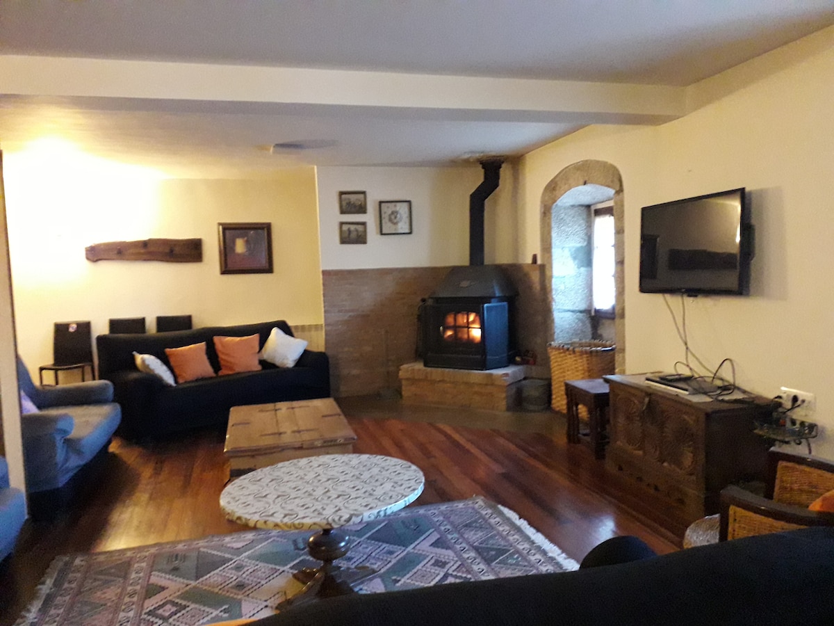 Stan Abuhardillado na 2. spratu, sastoji se od: - 1 spavaća soba - 2 dvokrevetne sobe (2 kreveta) - 1 dnevni boravak sa kaminom - 2 kupatila; imaju mašinu za sušenje veša - 1 balkon sa spoljnim nameštajem (sto i stolice), sa pogledom na glavnu ulicu sela - Posteljina i peškiri su uključeni