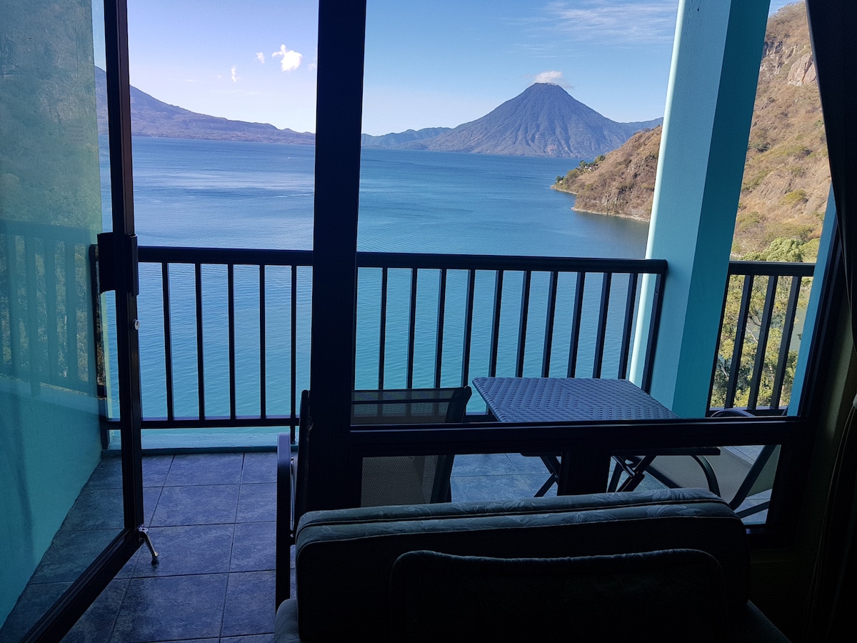 Uživajte u luksuznom stanu na 13. spratu sa panoramskim pogledom na najljepše jezero na svijetu. Obezbjeđenje non-stop, grijani bazen, đakuzi i pristanište. Samo 1 milju od grada (22 minute hoda ili 5 minuta vožnje tuk-tukom, 1,25 $ p/p). U blizini prirodnog rezervata Atitlan sa baštom leptira, stazama i obilascima nadstrešnica. Potpuno opremljena kuhinja sa potrepštinama za doručak (preporučuje se da ponesete dodatnu hranu). Peškiri su obezbijeđeni za kupatilo, ali ne i za bazen ili jezero. Parking je uključen (maks. 2 automobila).