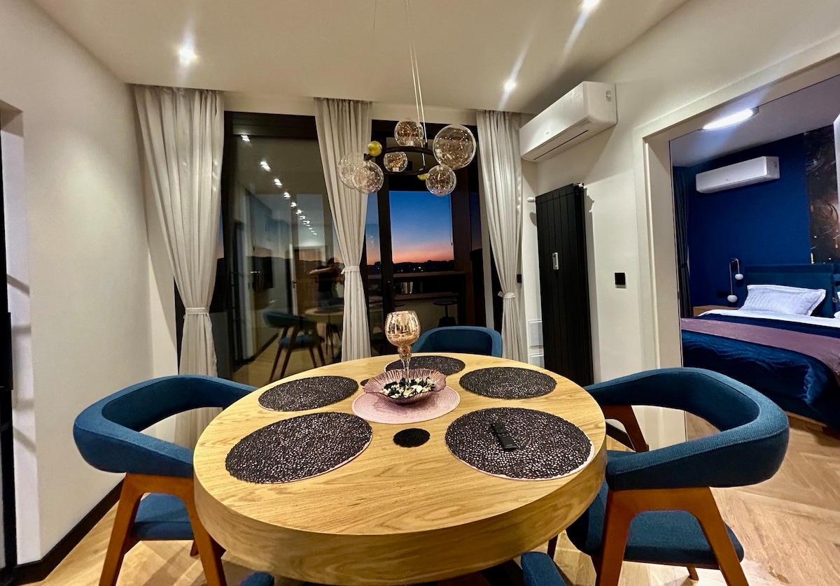 Studio X – luksuzno potkrovlje s pogledom Smješten na gornjem spratu u srcu Sofije, Studio X je moderno, elegantno i luksuzno utočište. Sa elegantnim enterijerom, vrhunskim sadržajima i prelijepim pogledom na grad, ovo ekskluzivno potkrovlje nudi savršen spoj udobnosti i prefinjenosti. Bilo da dolazite poslovno ili u slobodno vrijeme, Studio X pruža elegantan i nezaboravan boravak u živahnoj prestonici.