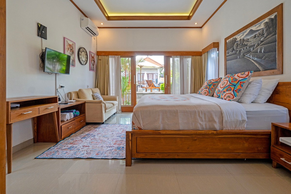 Da li putujete sa grupom od 6+ i očekujete prostranu i luksuznu vilu, ali pristupačnu? Onda vam je ovo jedina šansa! - Objekat površine 1300 kvadratnih metara, samo za vas. - 4BR sve sa sobom, 2 sa privatnim bazenom! - 3 bazena - u blizini plaže Sanur - besplatan prevoz - Pogled na džunglu - kvalitetna posteljina - besprekorno čist i dobro održavan - Uključujući doručak Ovo je mesto gde možete da delite posebno vreme sa porodičnim odmorom - na elegantan i luksuzan način! Rezervišite i uživajte, dok smo novi na Airbnb-u i na promotivnoj ceni!