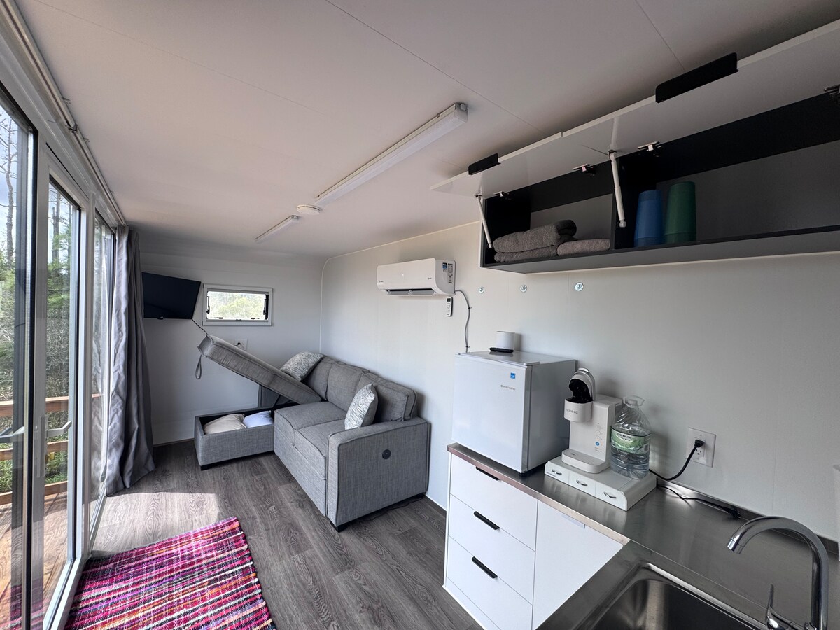 Ovo je mali dvospratni dom sa konceptom otvorene spavaće sobe na drugom spratu. Prvi sprat je otvorena kombinacija dnevnog boravka i trpezarije/kuhinje. Savršeno za jednu osobu ili parove koji traže miran odmor na selu. Veliko privatno dvorište sa sjajnim pogledom na zvezde noću. 45 minuta vožnje do OBX plaža. Naš dom je veoma udoban i daje osećaj da ste u sopstvenom domu 😊
