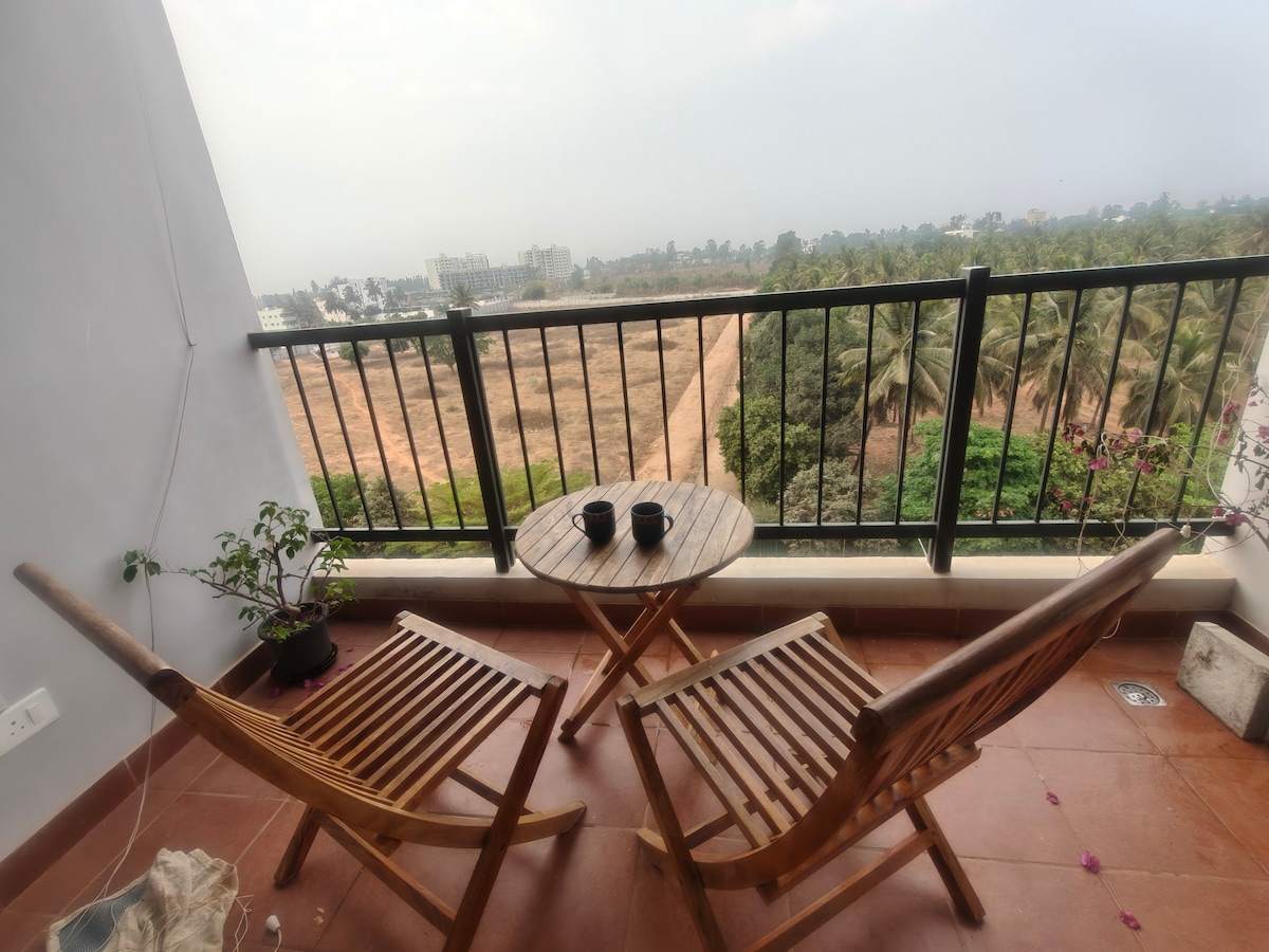 Pobjegnite u mirno utočište u dvosobnom stanu u prelijepoj ograđenoj zajednici na periferiji Bangalora. Sa pogledom na spokojne poljoprivredne površine, ovaj udoban stan je udaljen samo 15 minuta od međunarodnog aerodroma i blizu je brda Nandi, koncertnih lokacija, vinograda i Ašrama Iša. 🌿 Opcioni sadržaji kao što je bazen dostupni su u okviru zajednice (dodatni trošak se plaća direktno u klupskoj kući). Savršeno za: Parovi Porodice Poslovno putovanje Odmor za vikend Praktično zaustavljanje u blizini aerodroma✈️