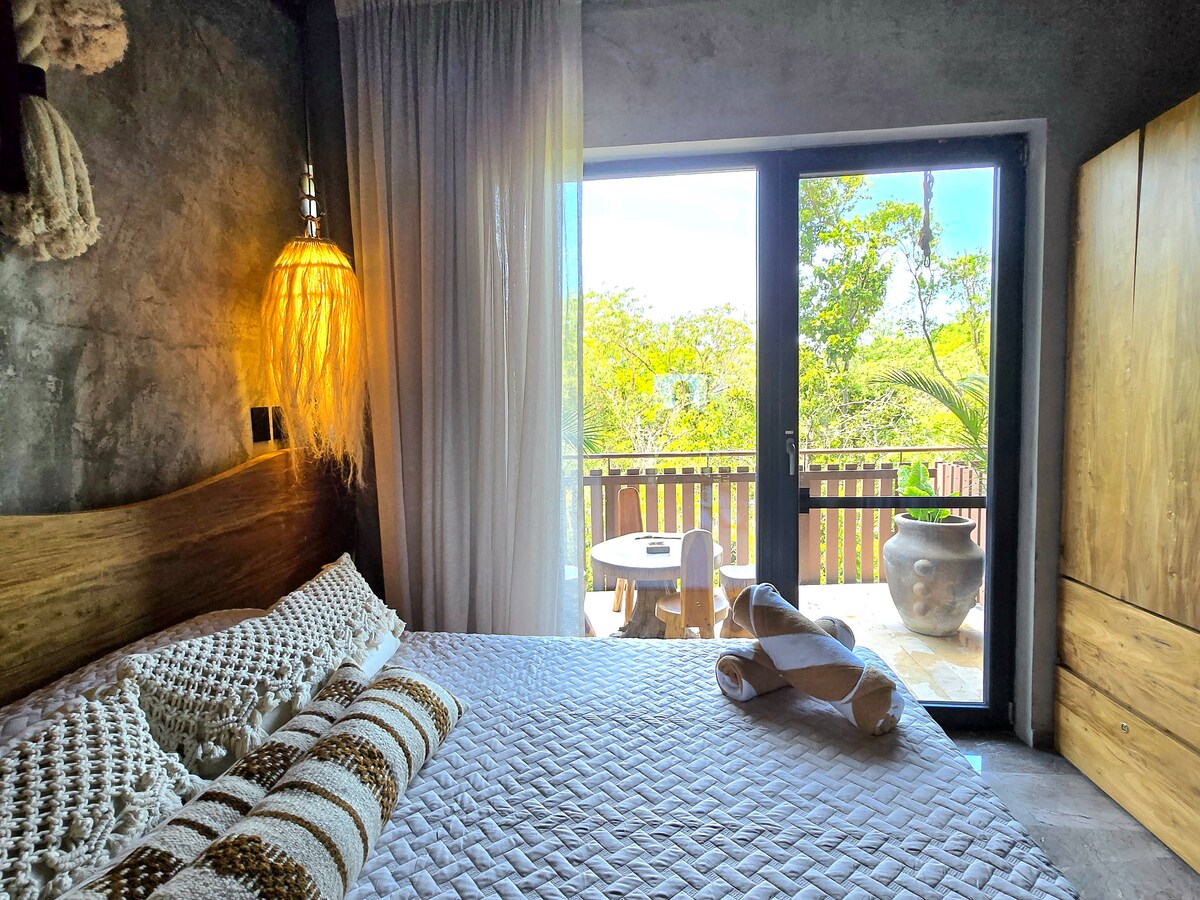 Otkrijte svoj privatni luksuzni raj u Tulumu, na samo 300 metara od glavne avenije i hotelske zone. Ovaj elegantni studio apartman ima bračni krevet, kupatilo i sofu na razvlačenje za vašu udobnost. Uživajte na privatnoj terasi sa zadivljujućim pogledom ili se uputite na krov sa panoramskim pogledom na okean i čuvenim staklenim mostom preko bazena. Bicikli su uključeni za slobodno istraživanje Tuluma. Samo 10-15 minuta hoda do Papaya Project BC, Azulik, javne plaže i 2,5 km od ruševina.